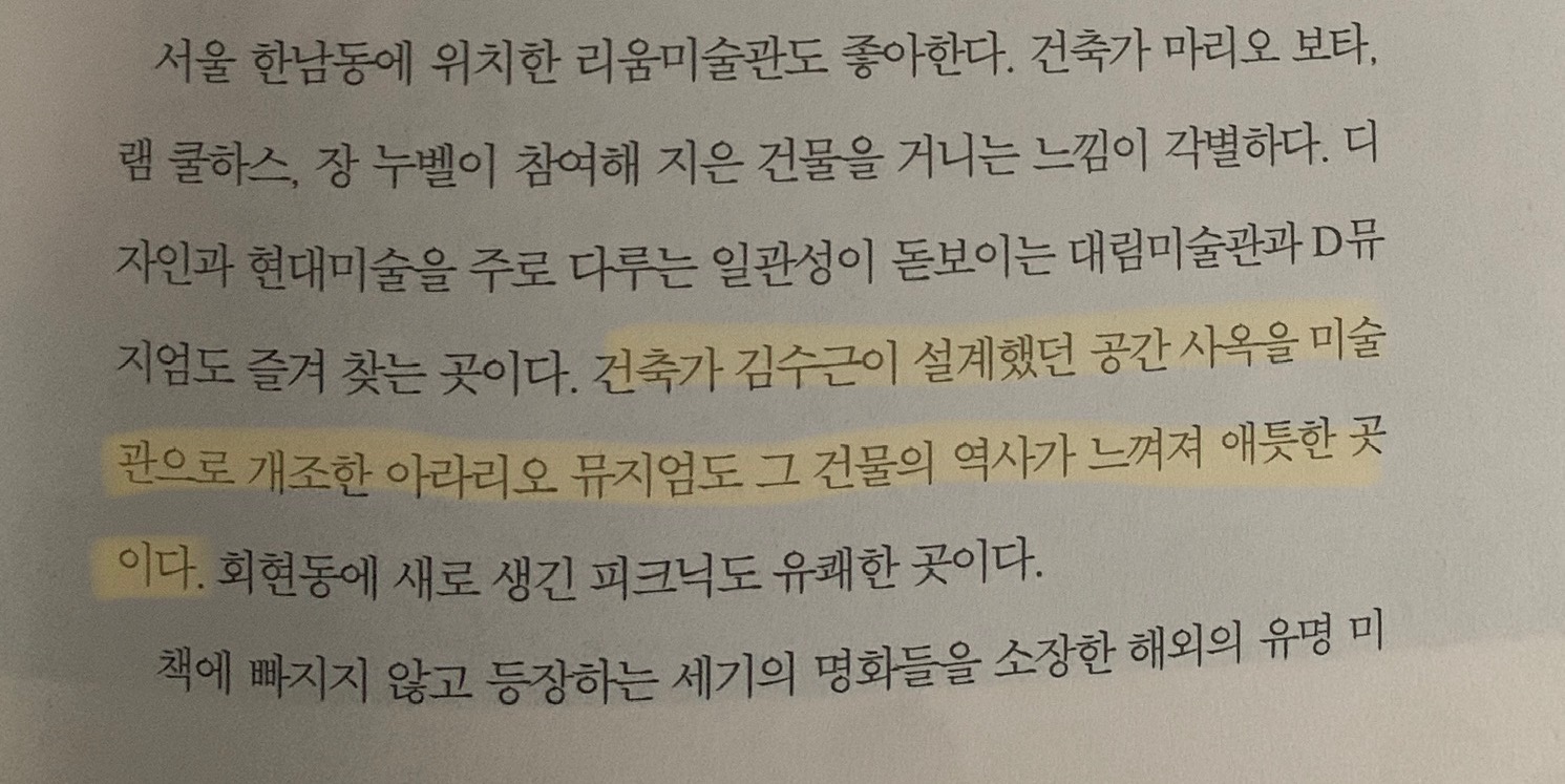 전시회에 좀 다녀본다고 한 사람들에게도 아라리오뮤지엄은 생소할 것이다. 대림미술관이나 D뮤지엄, 현대미술관은 대중적으로 유명하지만 아라리오 뮤지엄은 대중들에게 잘 알려지지 않은 곳이기 때문이다. 나도 잘 모르던 곳이었는데 최근에 읽은 심미안 수업이라는 책에서 윤광준 작가님이 좋아하는 건축물이라고 나와서 관심을 가지게 되었다.