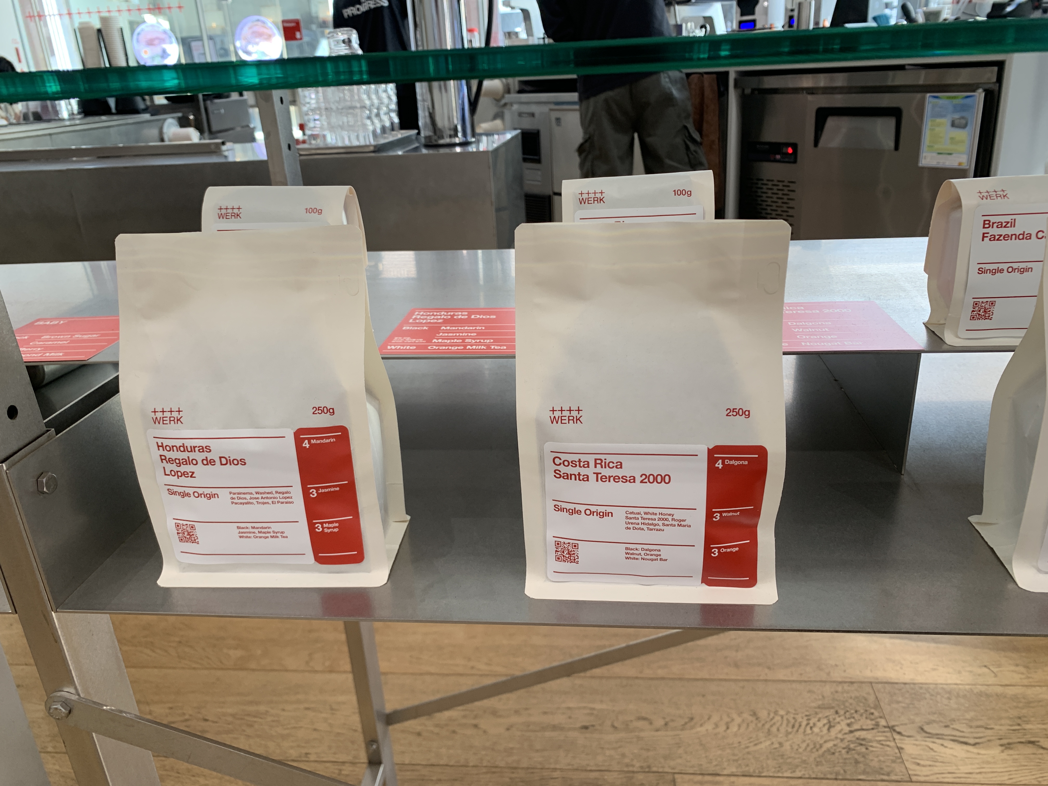 각 커피에도 손글씨로 원두종류를 써준다. 위쪽에는 Werker라거 해서 안쓰?라고 적혀있는데 아마 바리스타의 닉네임인 듯하다.