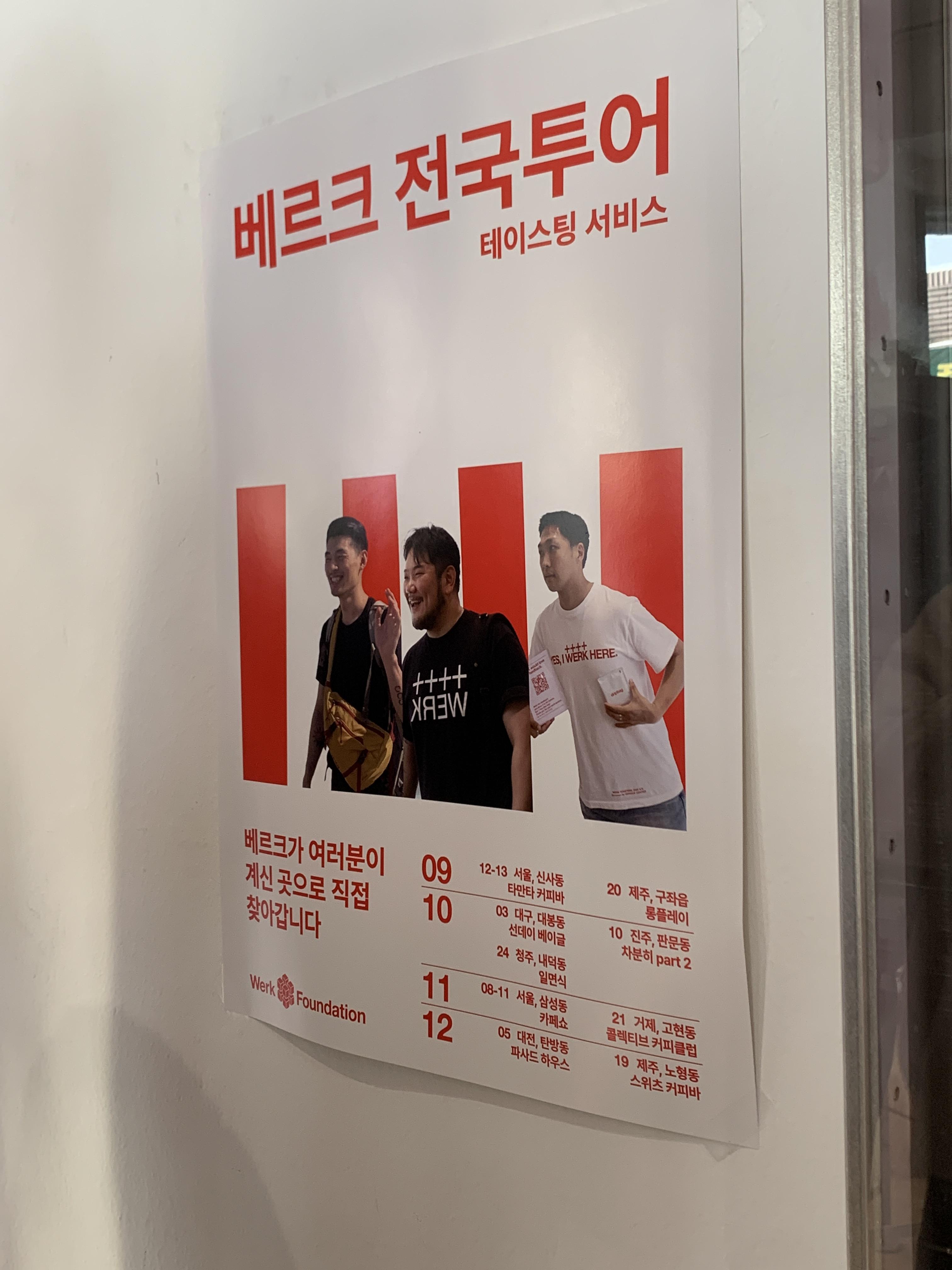 현재 베르크에서는 테이스팅 서비스라고 베르크 직원들이 베르크 원두를 받는 전국의 카페에 가서 교육을 시켜주는 서비스를 제공하고 있다고 한다. 포스터가 위트 있다. 베르크는 각 분야의 전문가 4명이 모여서 만든 브랜드로 알고 있는데 아마 포스터의 주인공들이 그분들인 것 같다.
