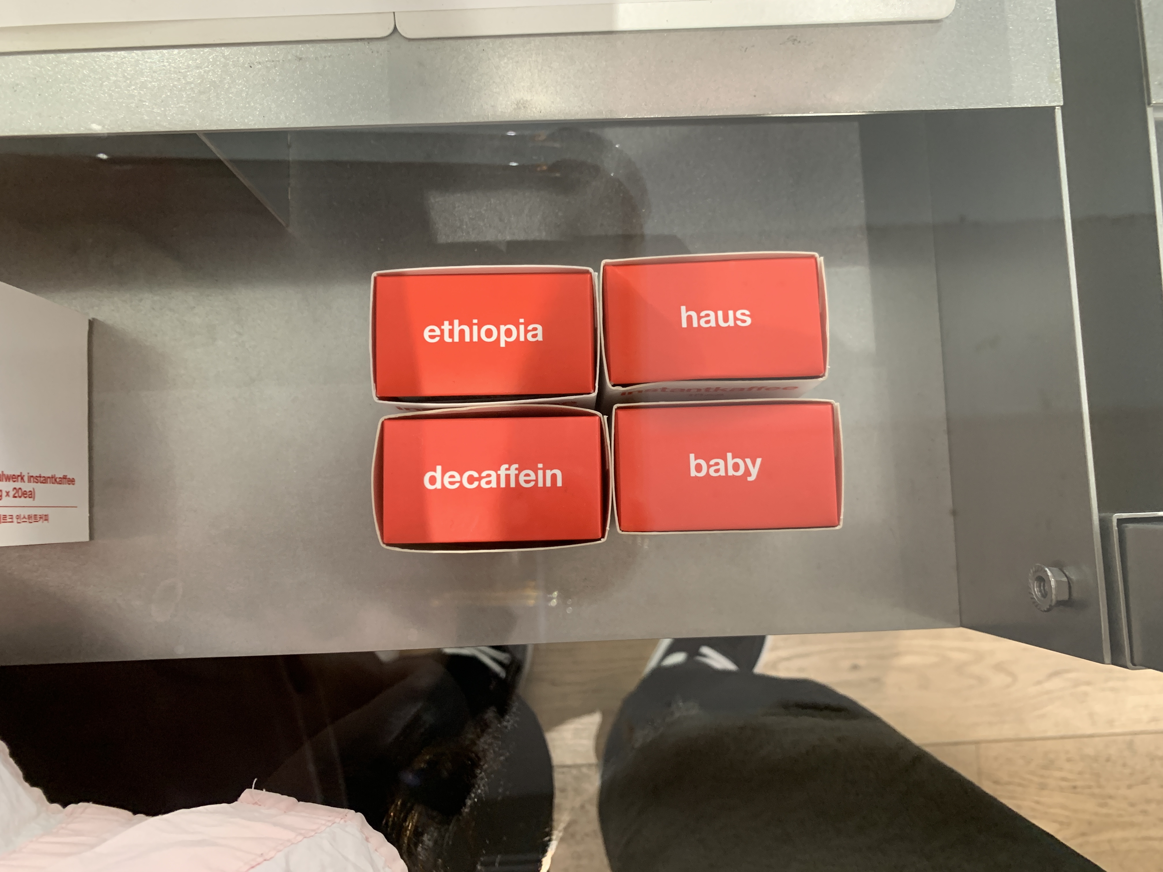직관적으로 원두의 종류를 알 수 있게 적어둔 인스턴트 가루 커피의 패키지.