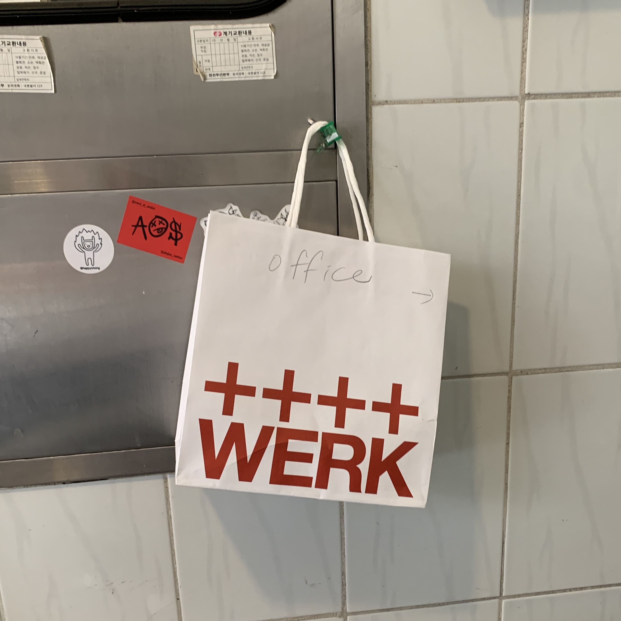 오피스를 표시해 둔 귀여운 종이가방.
