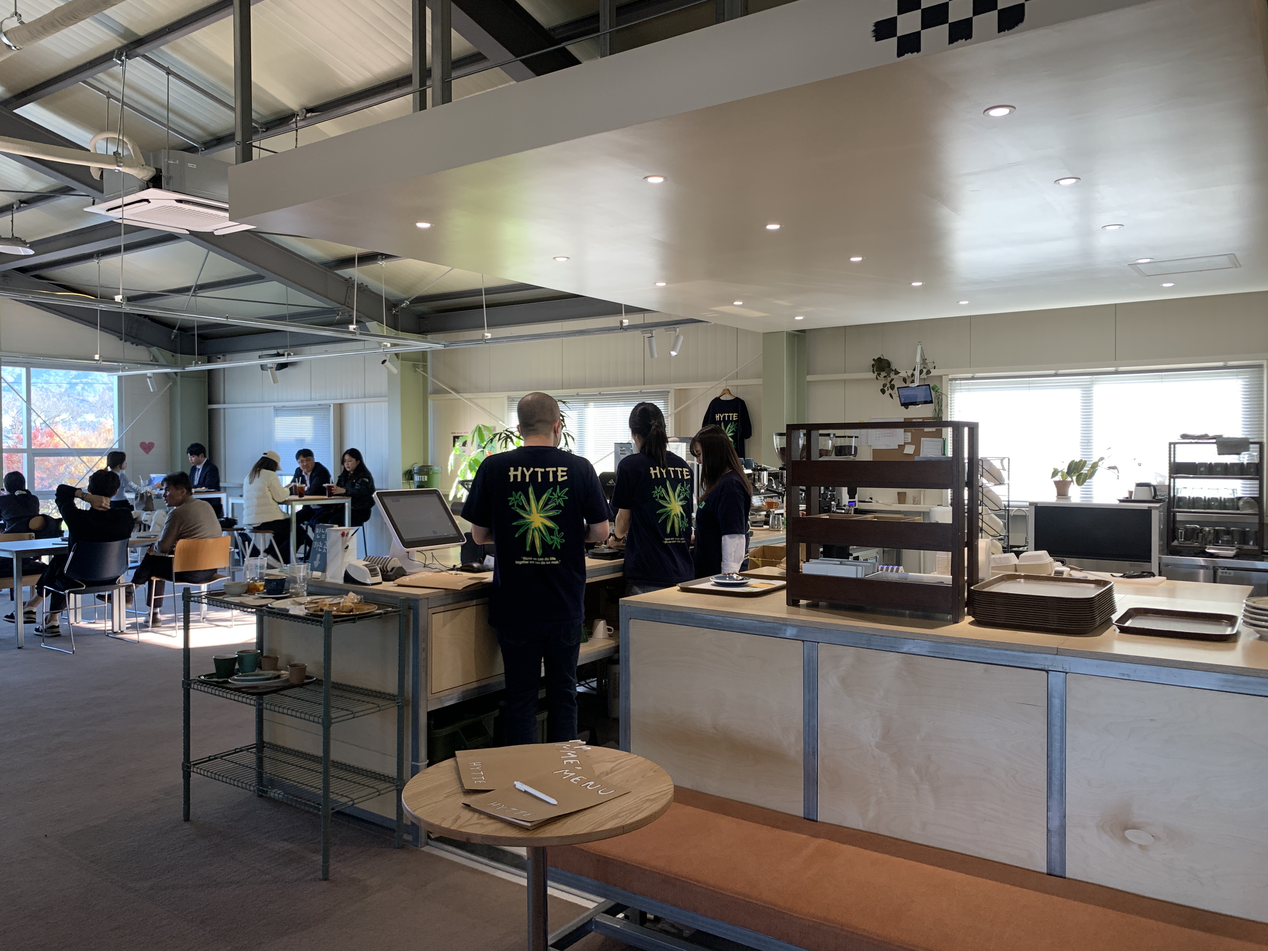 원래는 뻥 뚫려있었을 구조지만 커피바 배치나 주방배치등 중간중간 피티션으로 구분해 주면서 공간의 밀도를 더 높여준 것 같았다.