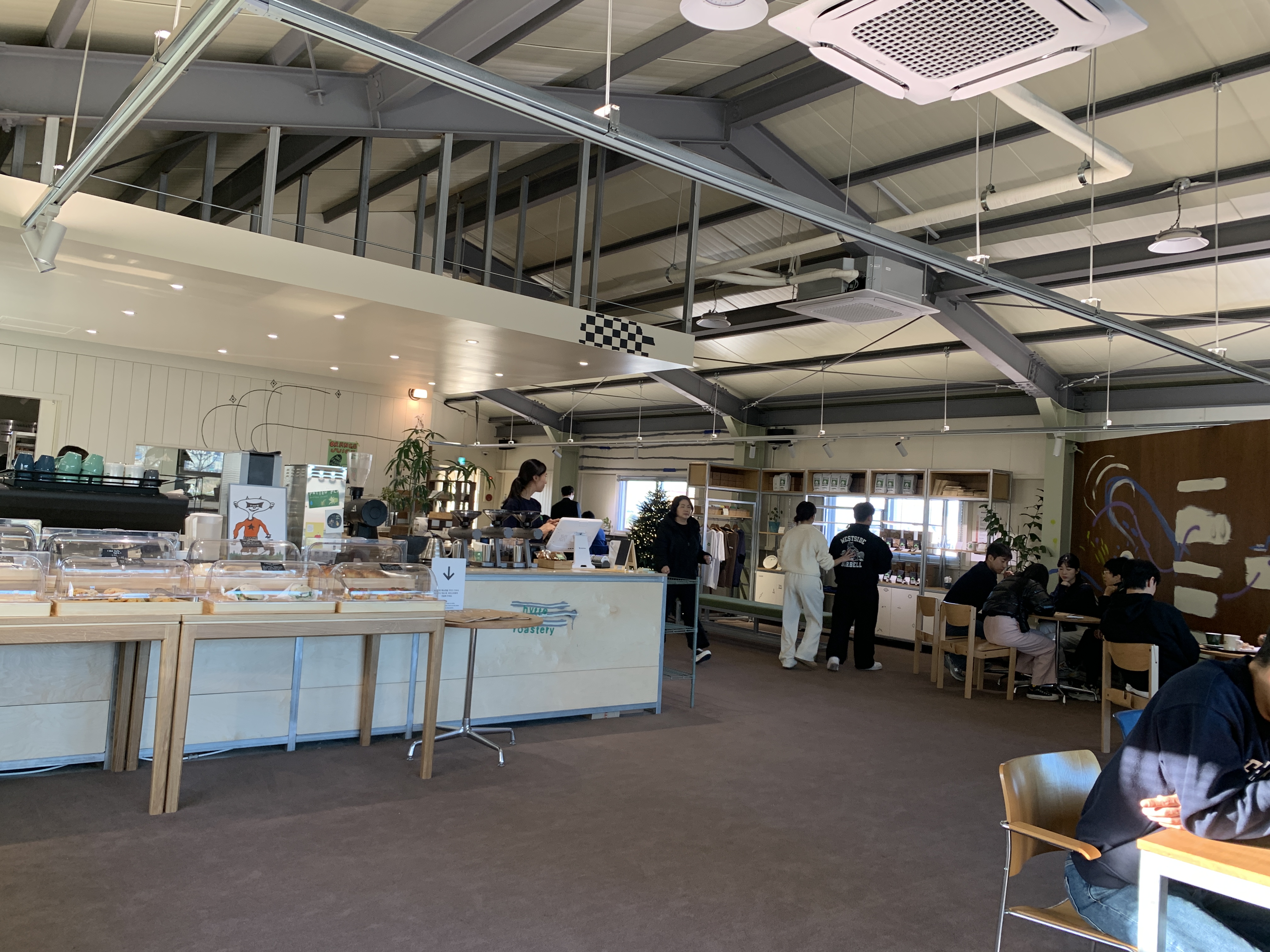 되게 마케팅적으로 좋다고 생각했던 부분인데 보통은 매장이 먼저 1층에 있고 2층에 로스팅실이 있는데 히떼 로스터리는 들어가자마자 1층부터 로스팅실이 있고 이곳을 지나서 올라가야 매장이 있다. 구조상 그럴게 된 지는 모르겠지만 내 생각에는 아마 손님들이 들어오면서 로스팅실을 보게 되면 조금 더 이 카페가 진짜 로스팅을 하고 있고 전문적인 곳이구나 라는 느낌이 들 수 있게끔 그렇게 층수를 나눈 것이라고 생각되었다.