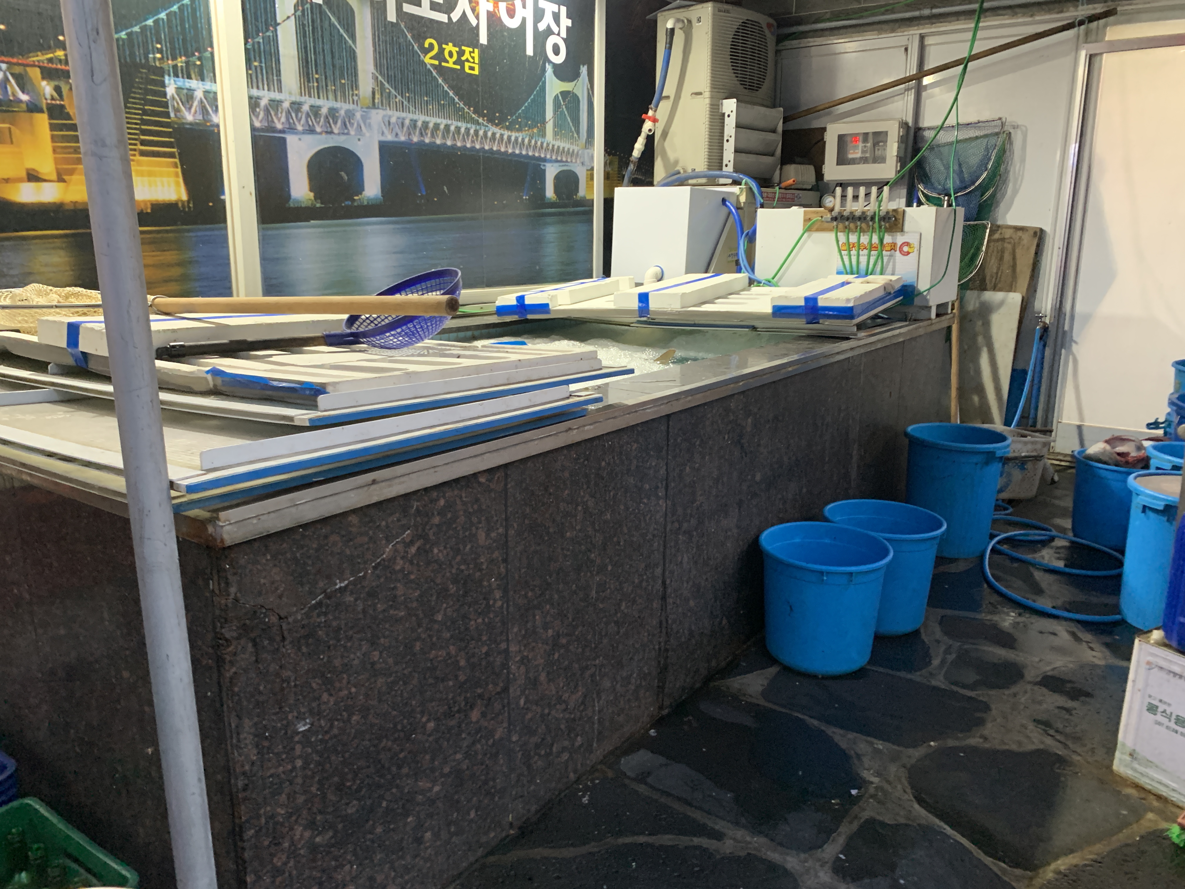 밖에 대방어 머리가 버려져있었는데 머리도 아주 크다. 우리는 자리가 난 1호점으로 안내받아서 들어갔다.