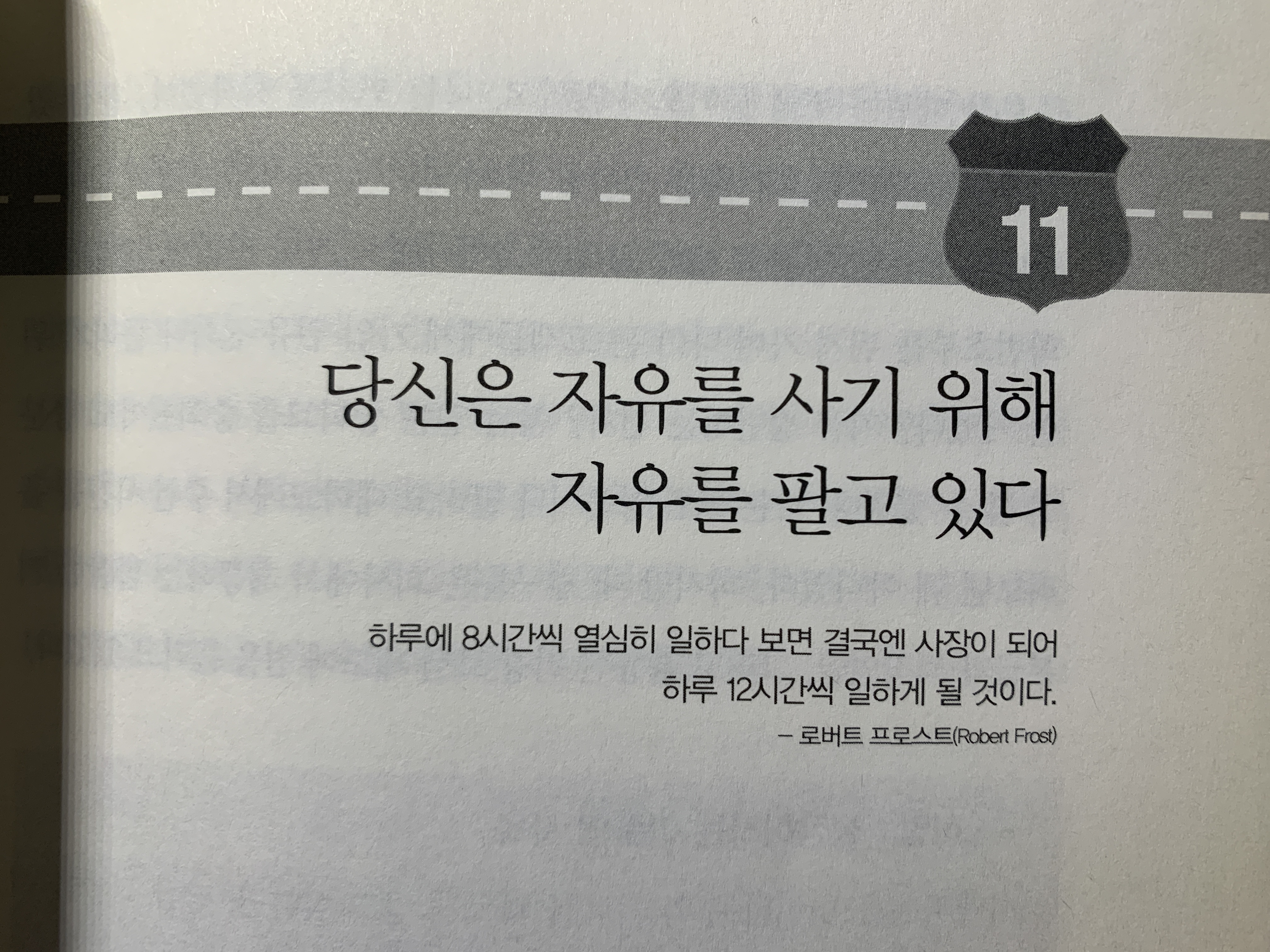우리는 어렸을 때부터 안정적인 직장에 들어가서 아껴 쓰고 저축하며 사는 것이 최고라는 고육을 받으며 자랐다. 그래서 조금이라도 이자율이 높은 저축 상품을 찾아다니고 사고 싶고 먹고 싶은 걸 참아가며 돈을 모은다. 엠제이 드마코는 이 모든 건 서행차선을 타고 있다는 증거며, 부자가 되기 위해선 빨리 그 사행차선을 벗어나서 추월차선을 타야 한다고 말한다.
