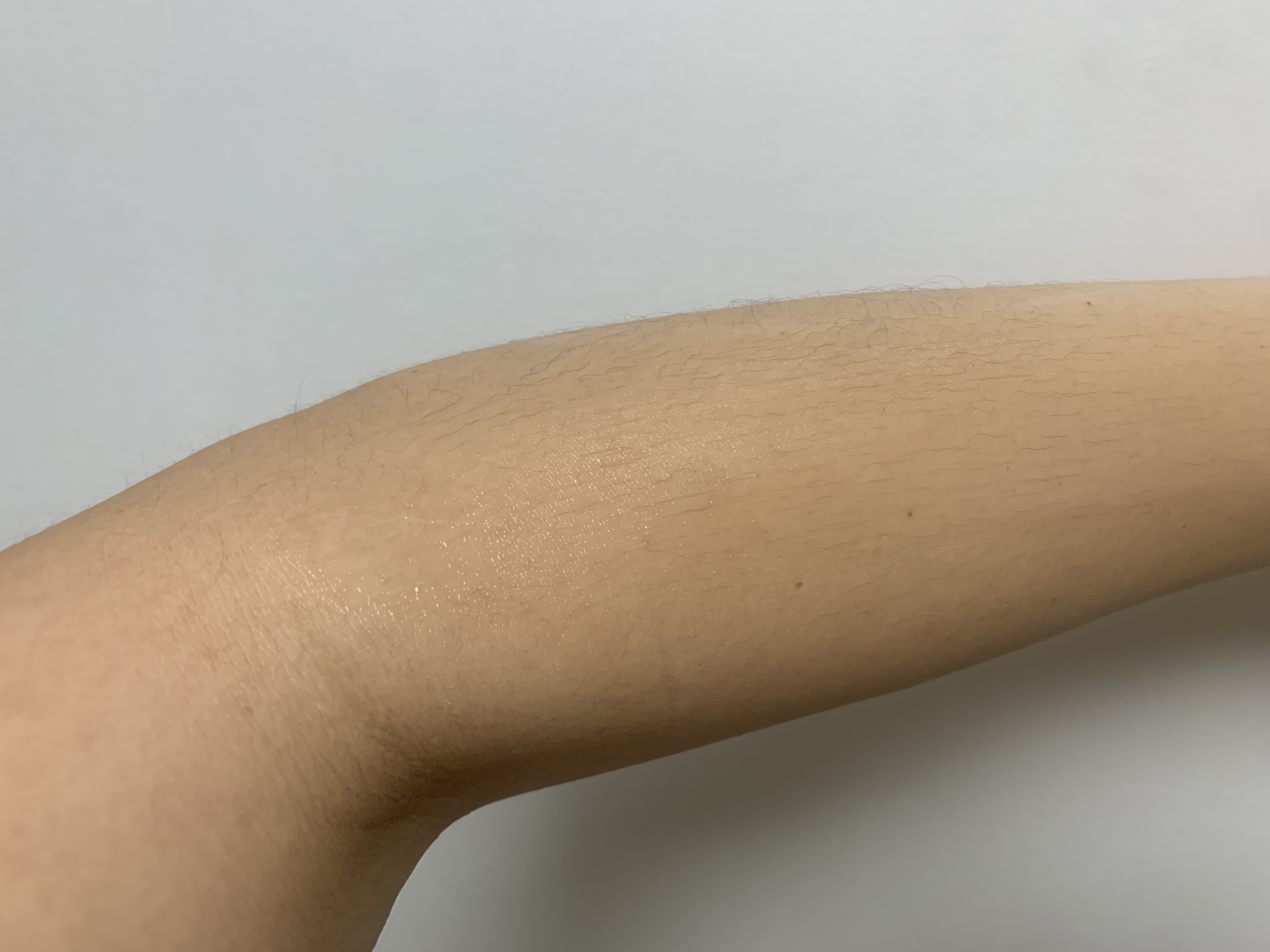 바르고 난 후의 모습이다. (털이 굉장히 잘 보이는군..) 바르기 전과 비교하면 피부에 윤기가 나고 촉촉해진 걸 알 수 있다. 보통 다른 바디로션들 보면 바른 직후에는 촉촉하지만 시간이 지나면 바로 다시 건조해지는 것들도 있다. 그래서 바디로션을 바르고 10분 후 모습을 다시 사진을 찍어봤다.