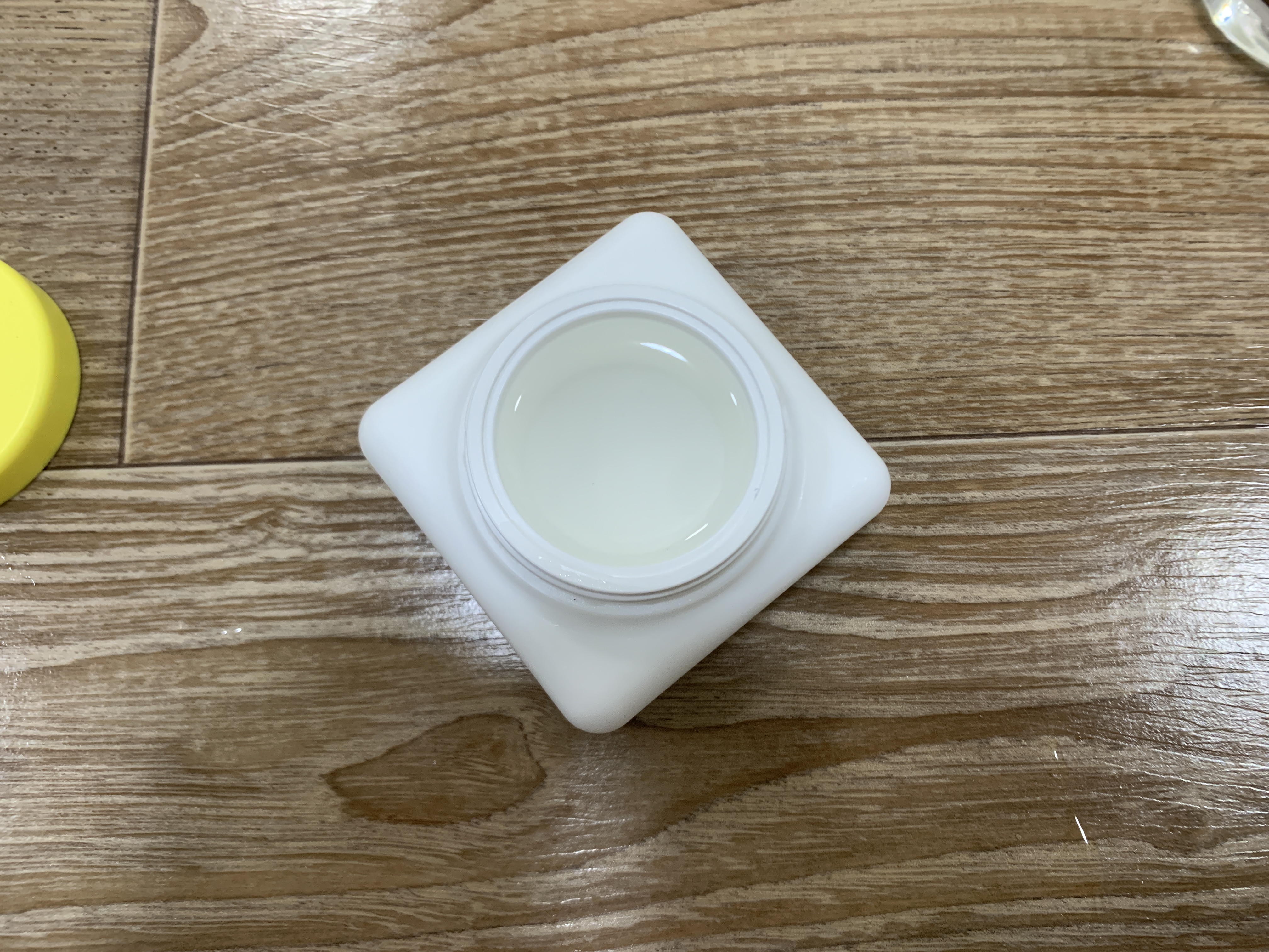 오오옷..! 원래 이렇게 투명한 색깔이었다니! 신기할 정도로 맑은 액체가 있다. 다행히 새지도 않았다. 한 시간 정도만 넣어둬도 잘 녹을 것 같다. 지금은 겨울이기 때문에 결국 상온에 두면 다시 굳게 되어있다. 그럴 때마다 다시 녹여서 사용하기에는 여간 귀찮은 게 아니기 때문에, 녹았을 때 입구가 넓은 통에 옮겨두고 사용할 때마다 덜어서 피부의 온기로 녹여 사용하면 된다.(오일 밤과 같은 원리다)
