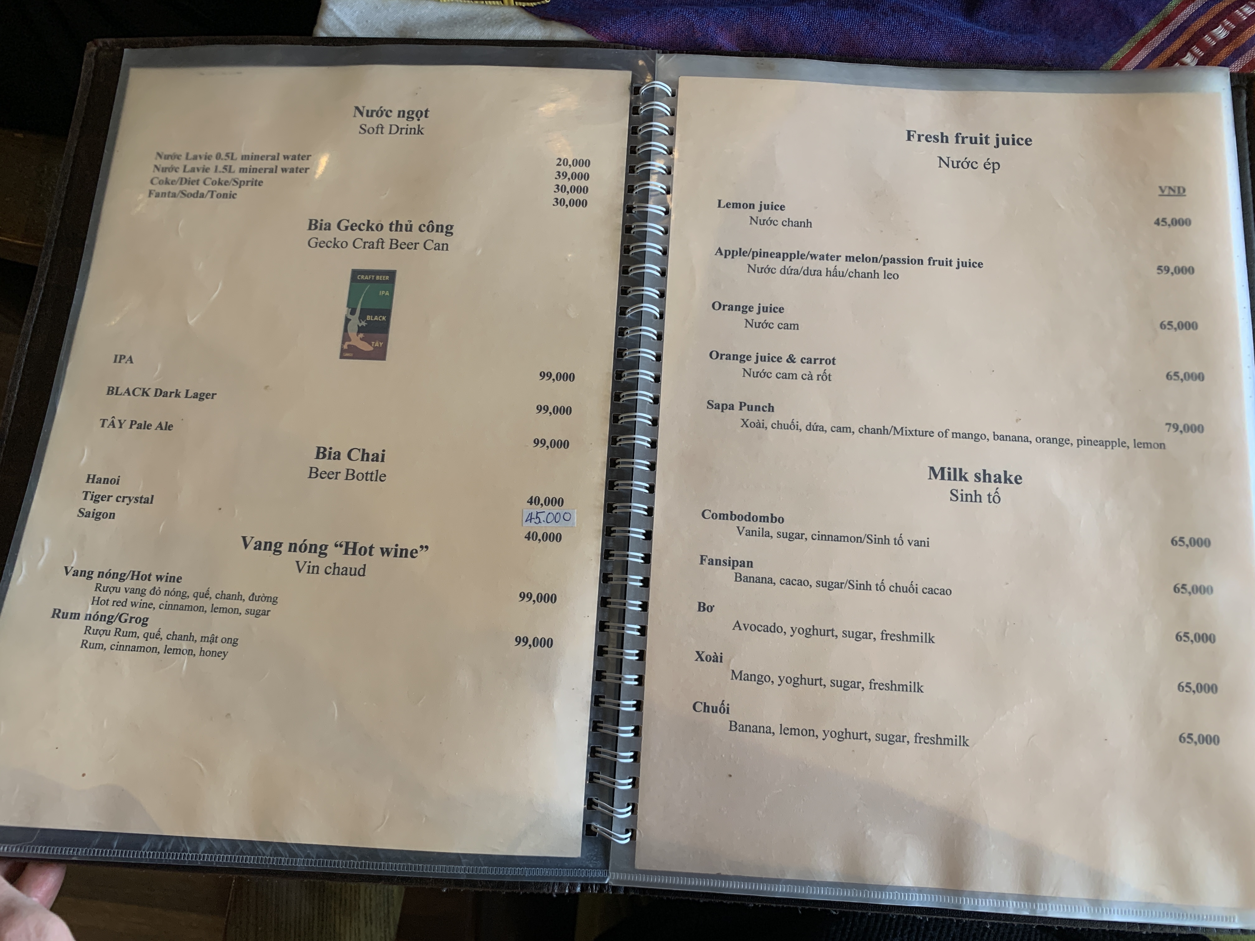 하노이 비어까지 한병 더 해서 190,000동, 한화 약 9,500원이 나왔다.