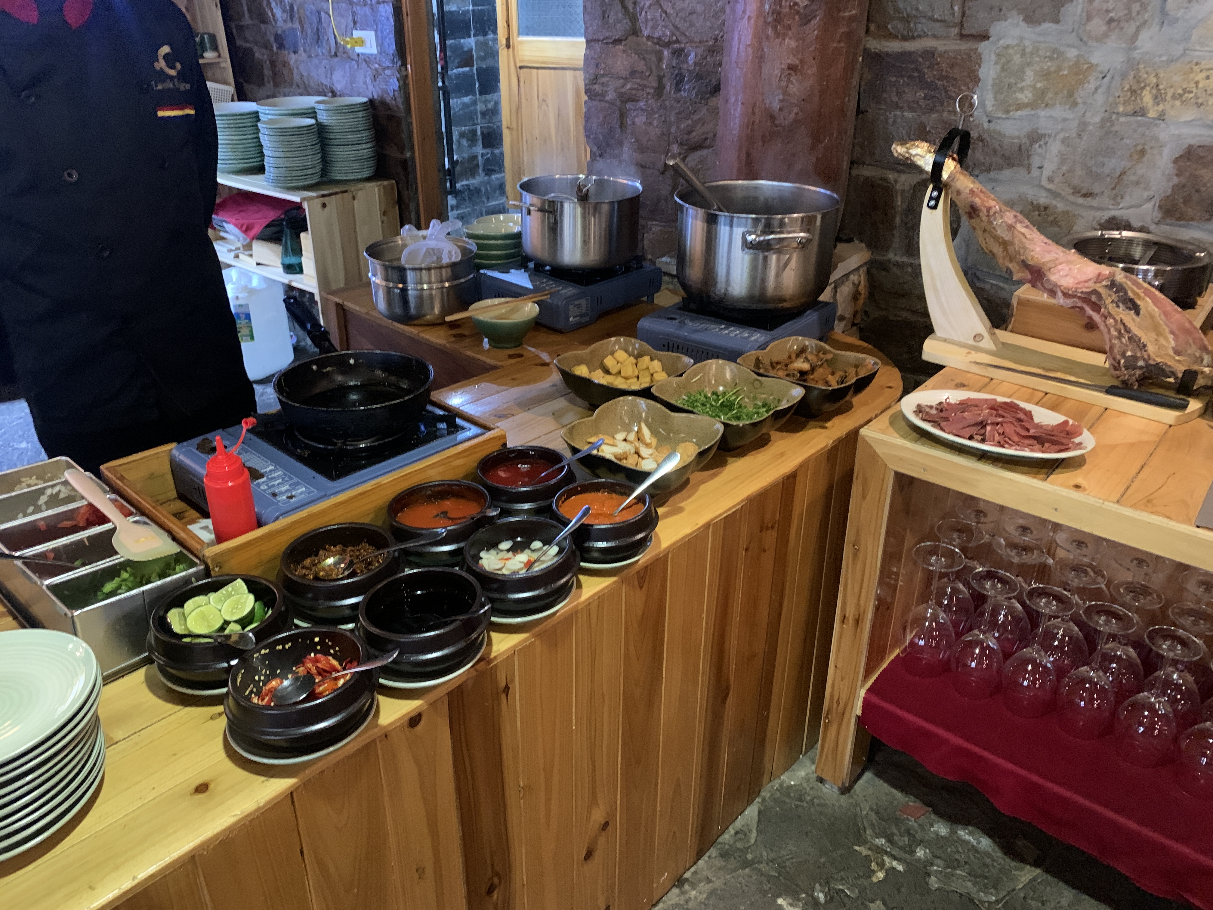 안개가 심했지만 오히려 그래서 더 신비로운 느낌을 주는 풍경이었다. 조식을 먹기 전날, 시내에서 좀 빨리 숙소로 와서 간단하게 저녁도 먹었었다. (사실 저녁을 먹고 들어왔어서 저녁이라기보다는 야식에 가까운) 가격은 시내에 비해서 조금 나오지만 분위기도 좋고 음식도 다양했다.
