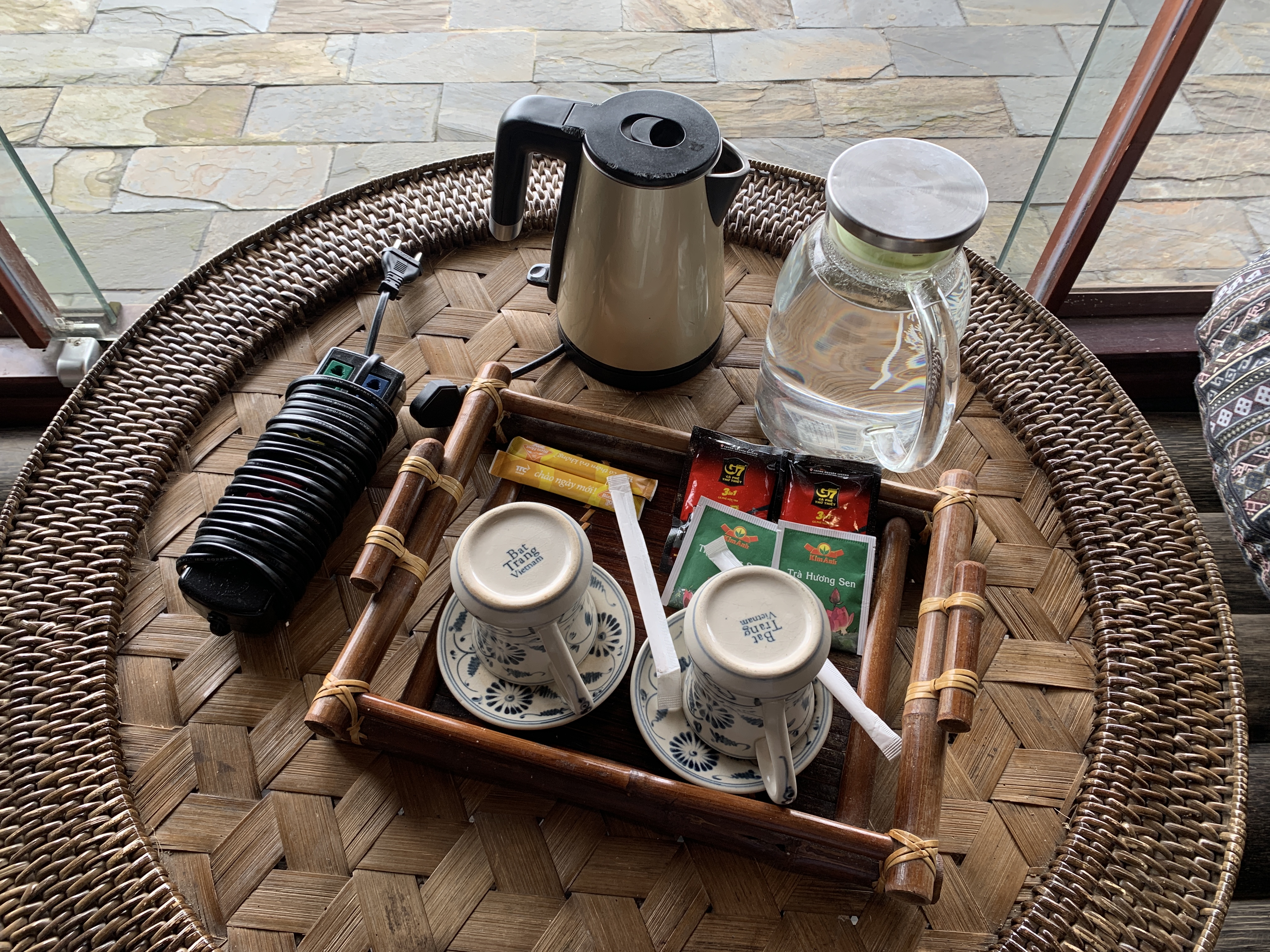 방 안에는 빈백이 있었는데, 날씨가 좋으면 테라스에 가지고 나가서 앉으라고 둔 거라고 한다. 하지만 우리는 비가 와서 바닥이 젖어있어서 가지고 나가지는 못했다.