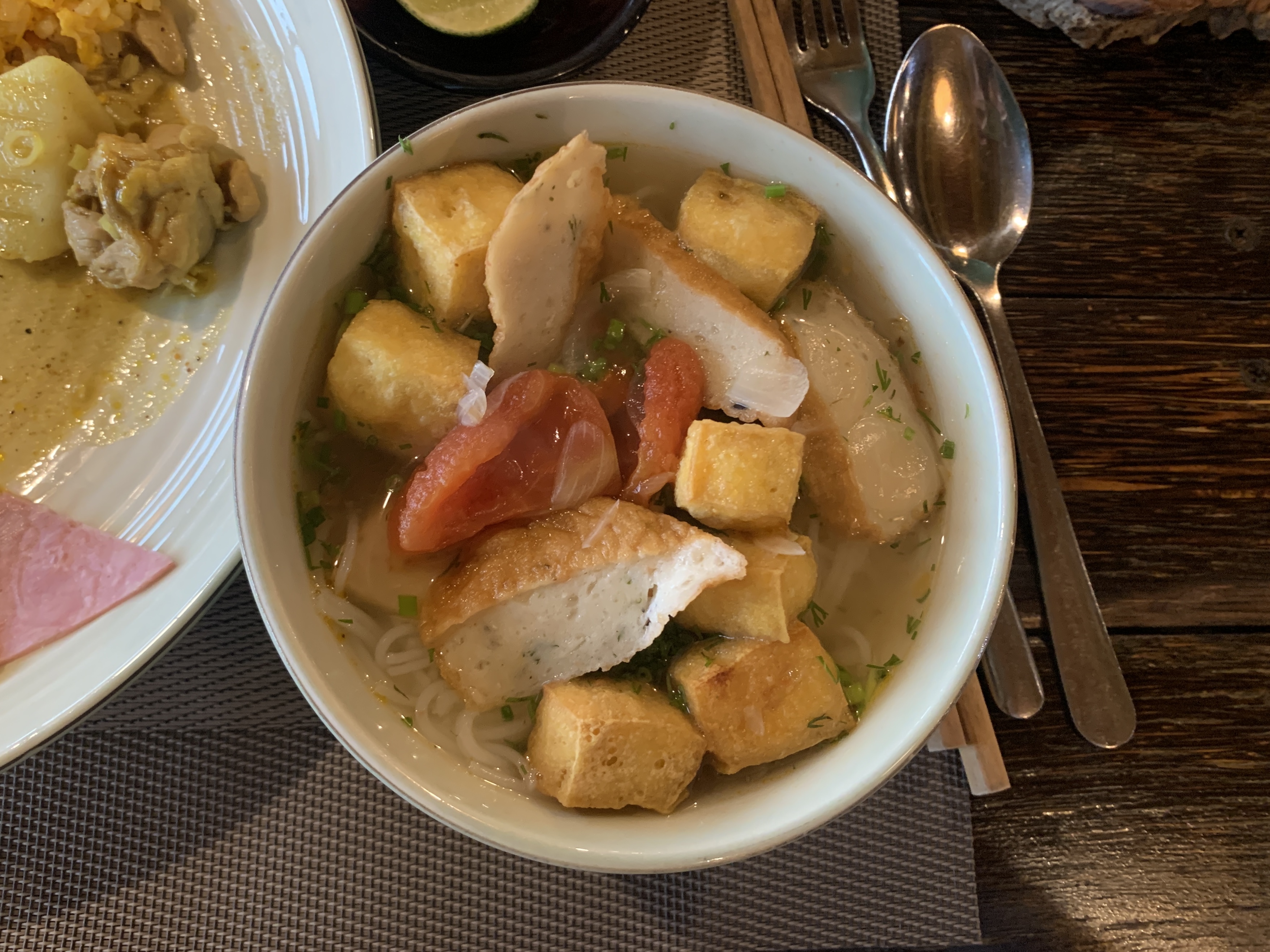 시킨 쌀국수가 나왔다. 직접 테이블로 가져다주신다. 어묵과 튀긴 두부, 토마토가 들어간 쌀국수다. 맛이 독특했었다. 맛있었다.