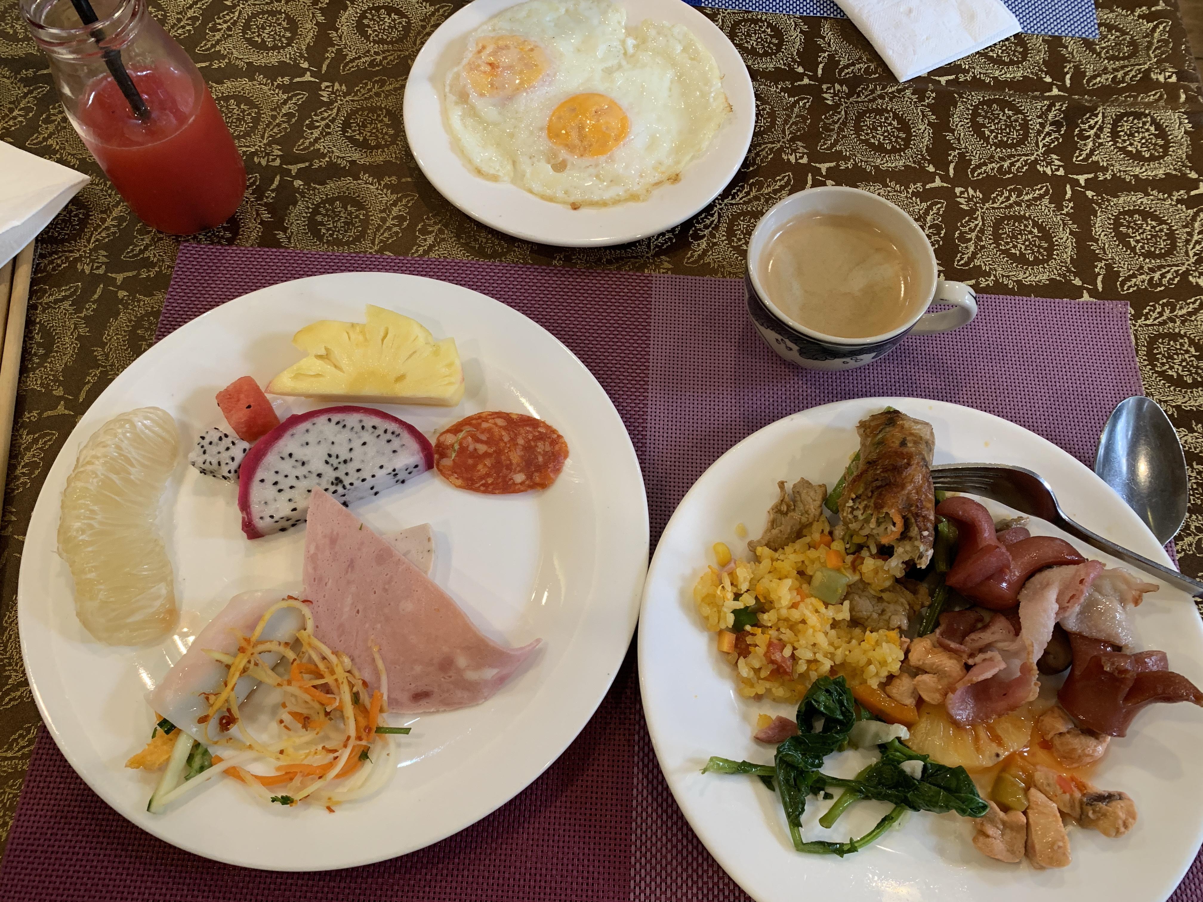 우리는 전날 밤에 저녁도 제대로 먹지 못하고 슬리핑버스를 탔기 때문에 거의 12시간을 아무것도 못 먹은 상태였다. 당연히 도착한 날은 조식을 먹을 수 없는 상태였는데 마침 직원분이 일인당 150,000동을( 7,500 정도) 내면 지금 조식을 먹을 수 있다고 말해주셔서 조식을 사랑하는 우리는 당장 그러겠다고 했다. 그리고 사파 호라이즌 호텔의 조식은 베트남에서 먹었던 호텔 조식 중에 가장 맛있었고 종류가 많았다.