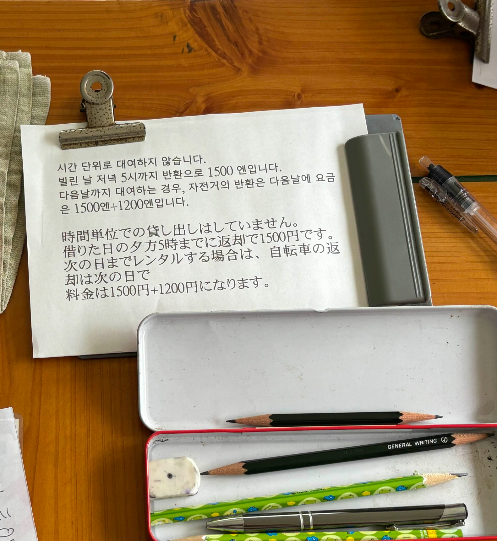현장 렌탈시 하루에 1500엔(한국돈 약 15,000원)