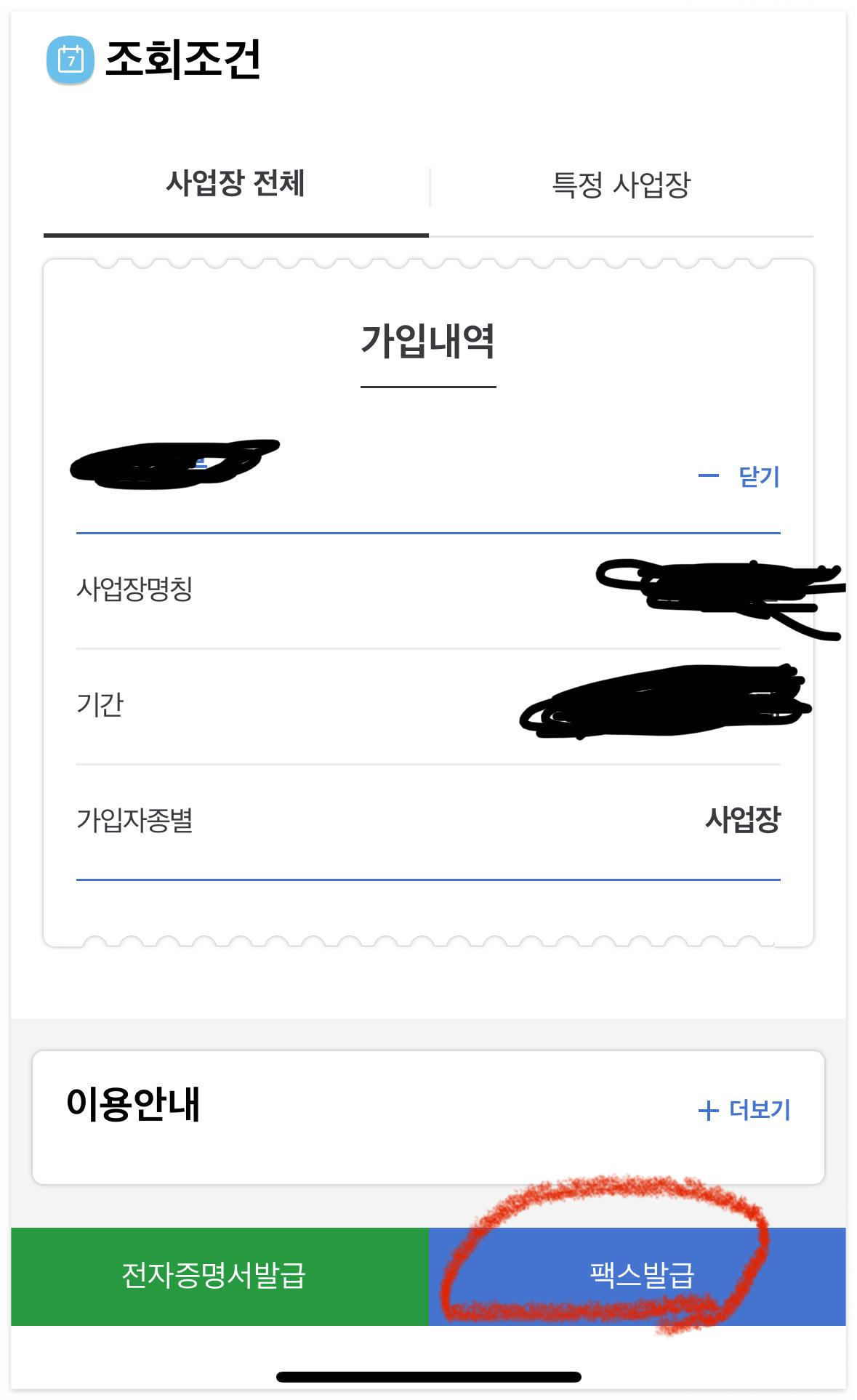 팩스로 안 받고 전자증명서를 받고 싶으면 왼쪽에 전자증명서 발급을 누르면 된다.