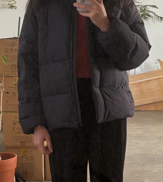 일단 두께가 엄청 두껍지는 않다. 한겨울 영하로 떨어지는 날에는 입기 좀 추울 것 같다. 하지만 부산에서는 영하로 떨어지는 날이 많지 않으니 부산에서 데일리로 입고 다니기 아주 재격인 패딩이다.