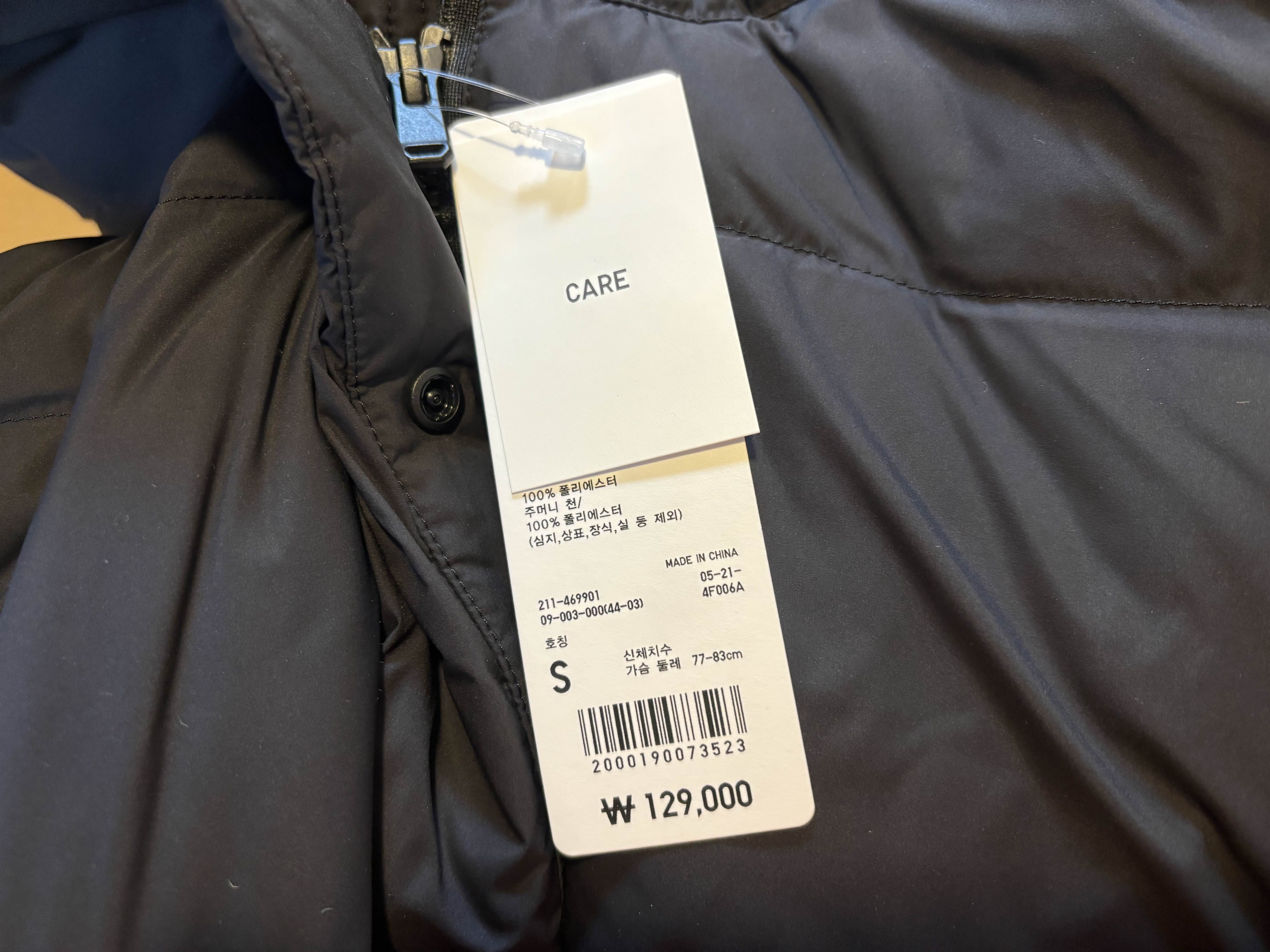 유니클로 공식홈에서 구매했고, 생일 5,000원 쿠폰을 사용해서 124,000원에 구매했다. 토요일에 주문했는데 월요일에 바로 도착했다.