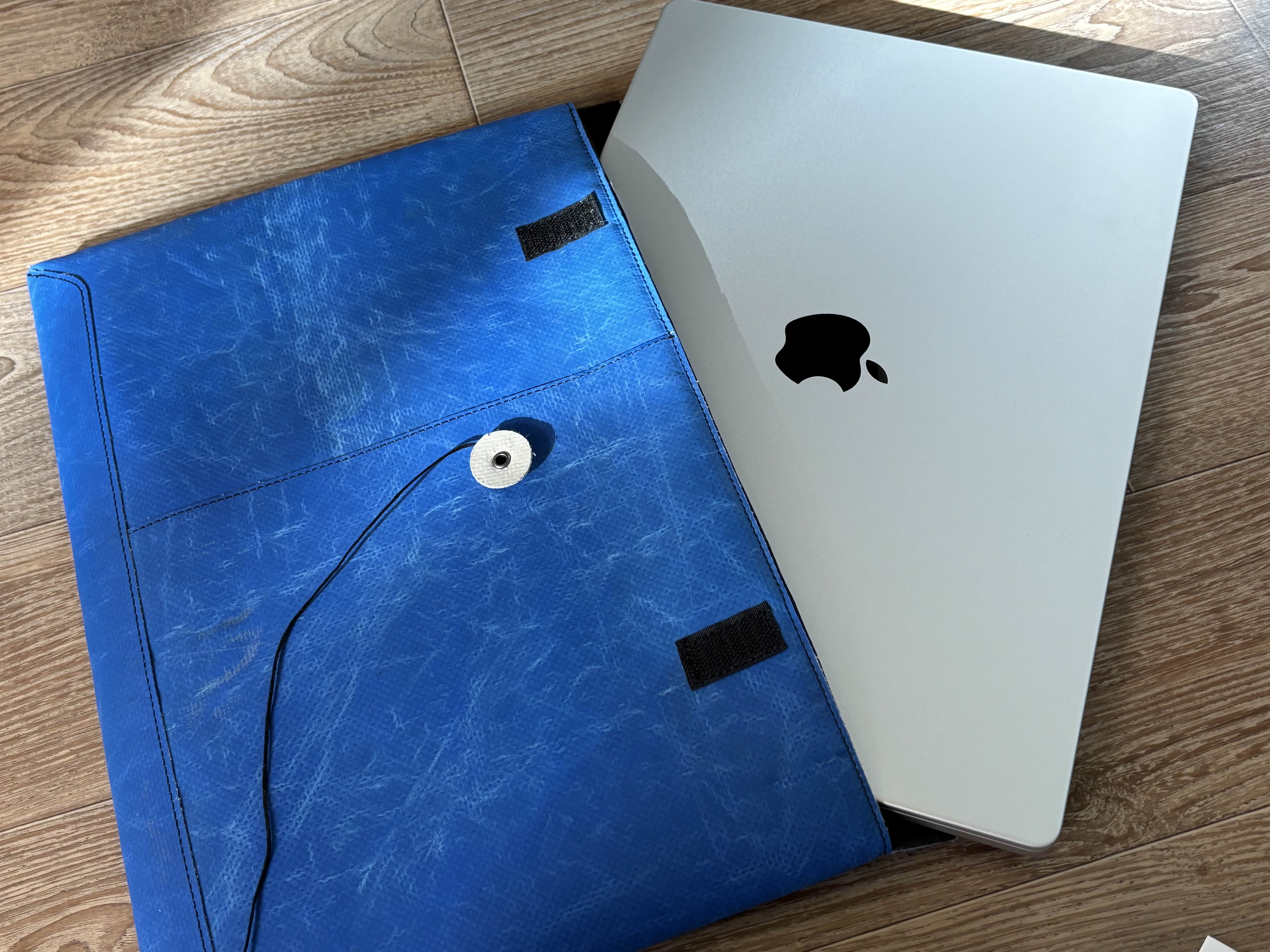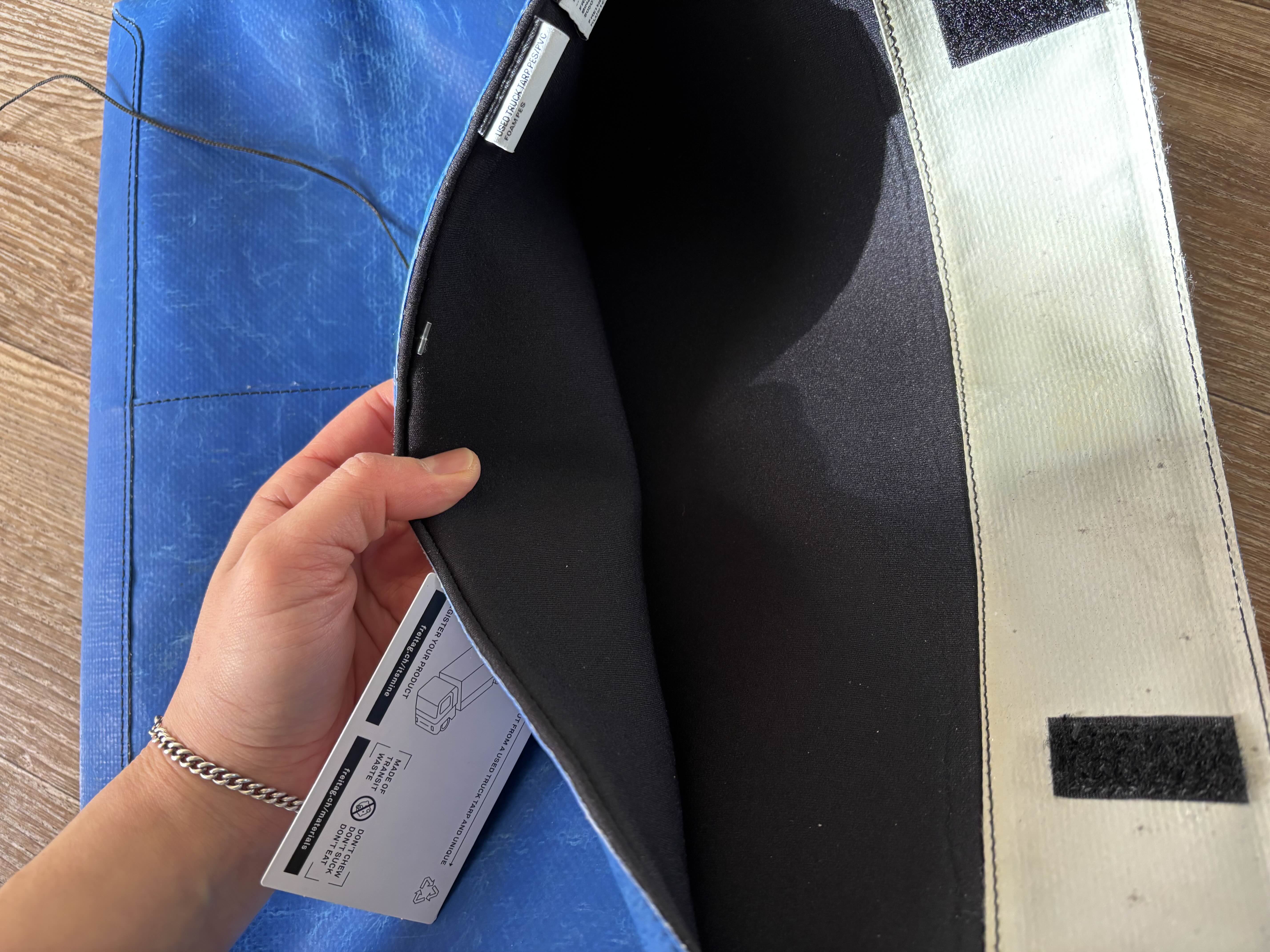 노트북 파우치는 노트북이 직접 닿는 내부가 중요한데 프라이탁의 내부는 약간 폭신한 소재로 되어있다. 많이 푹신 한 건 아니고 누르면 살짝 들어가는 정도? 엄청나게 노트북이 잘 보호될 것 같지는 않지만 그래도 어느 정도는 충격을 흡수해 줄 것 같다.