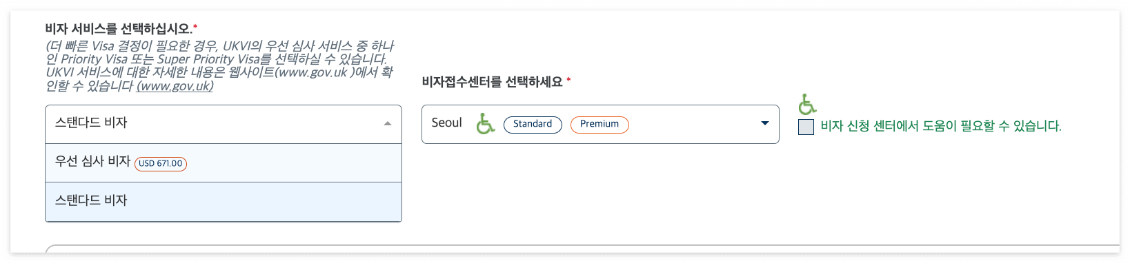 그다음에 넘어가면 부가가치서비스를 선택할 수 있는 칸이 나온다. 나는 영국 워홀을 2022년도에 가진 분의 블로그를 보며 예약을 진행했는데, 그때는 부가서비스 선택에 서류 셀프 업로드가 없이 자동으로 예약을 마치면 셀프업로드 하는 칸이 나오는 것 같았다. 하지만 2025년 비자센터 예약에서는 서류셀프 업로드도 부가서비스로 선택해야지 예약이 완료되었을 때 서류를 업로드할 수 있는 칸이 나오니까 꼭 체크를 해주도록 하자.