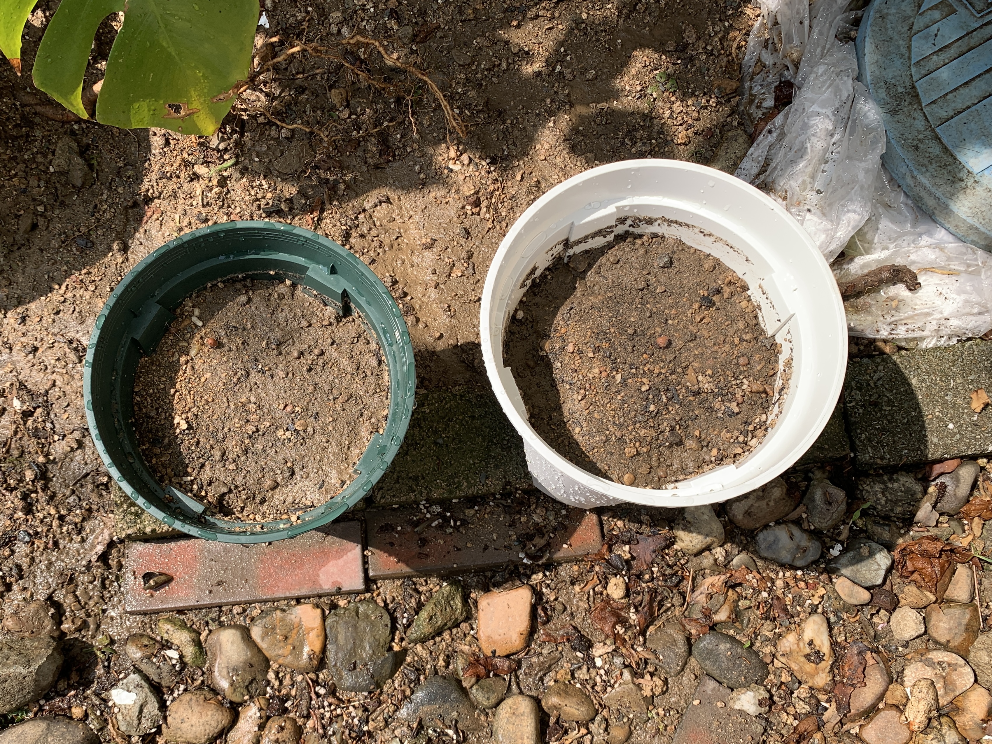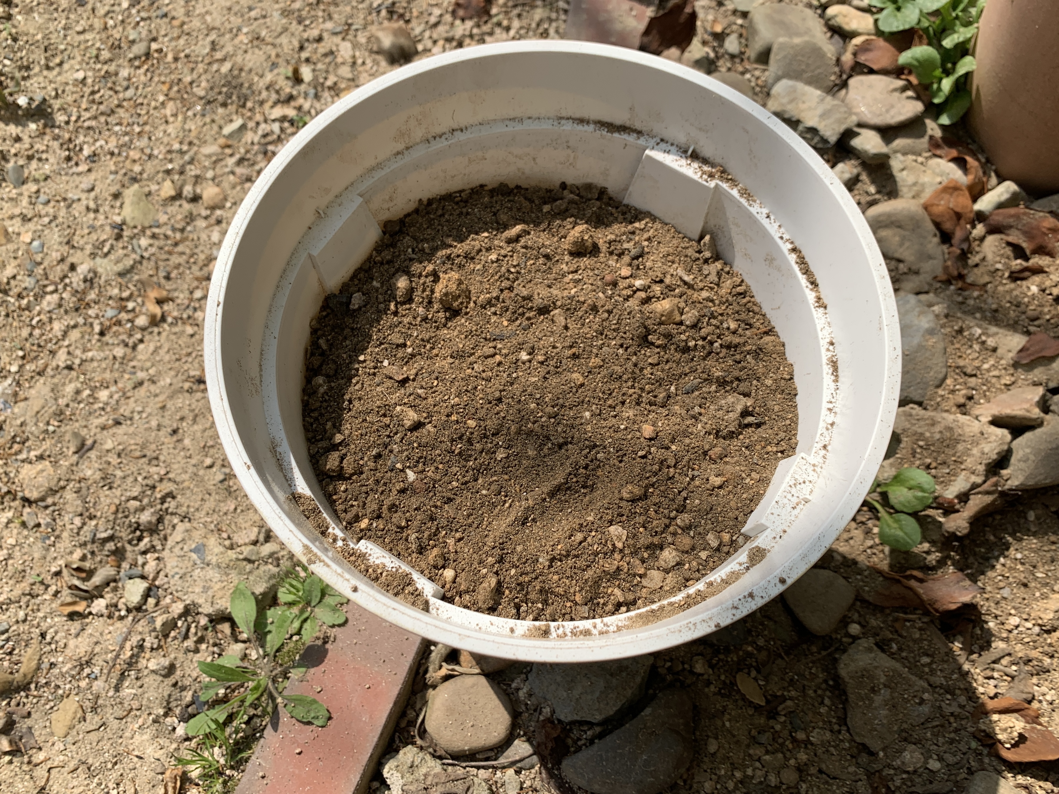 분갈이용 흙을 사서 심을까 했지만 사러 가기 귀찮아서 그냥 정원에 있는 흙을 퍼서 담았다.