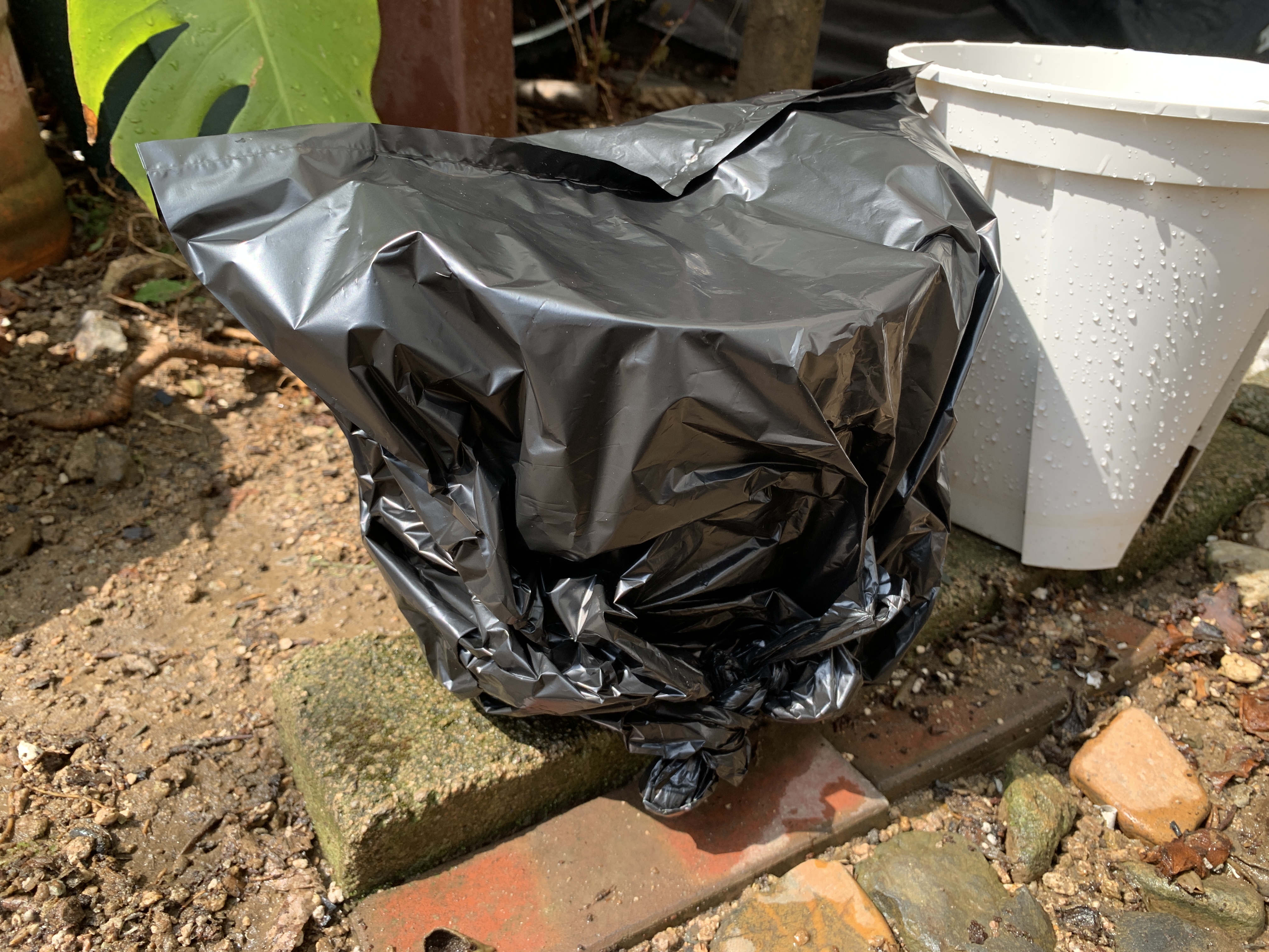 식물 덮개용 비닐은 없어서 그냥 집에 있는 까만색 비닐봉지를 이용했다.