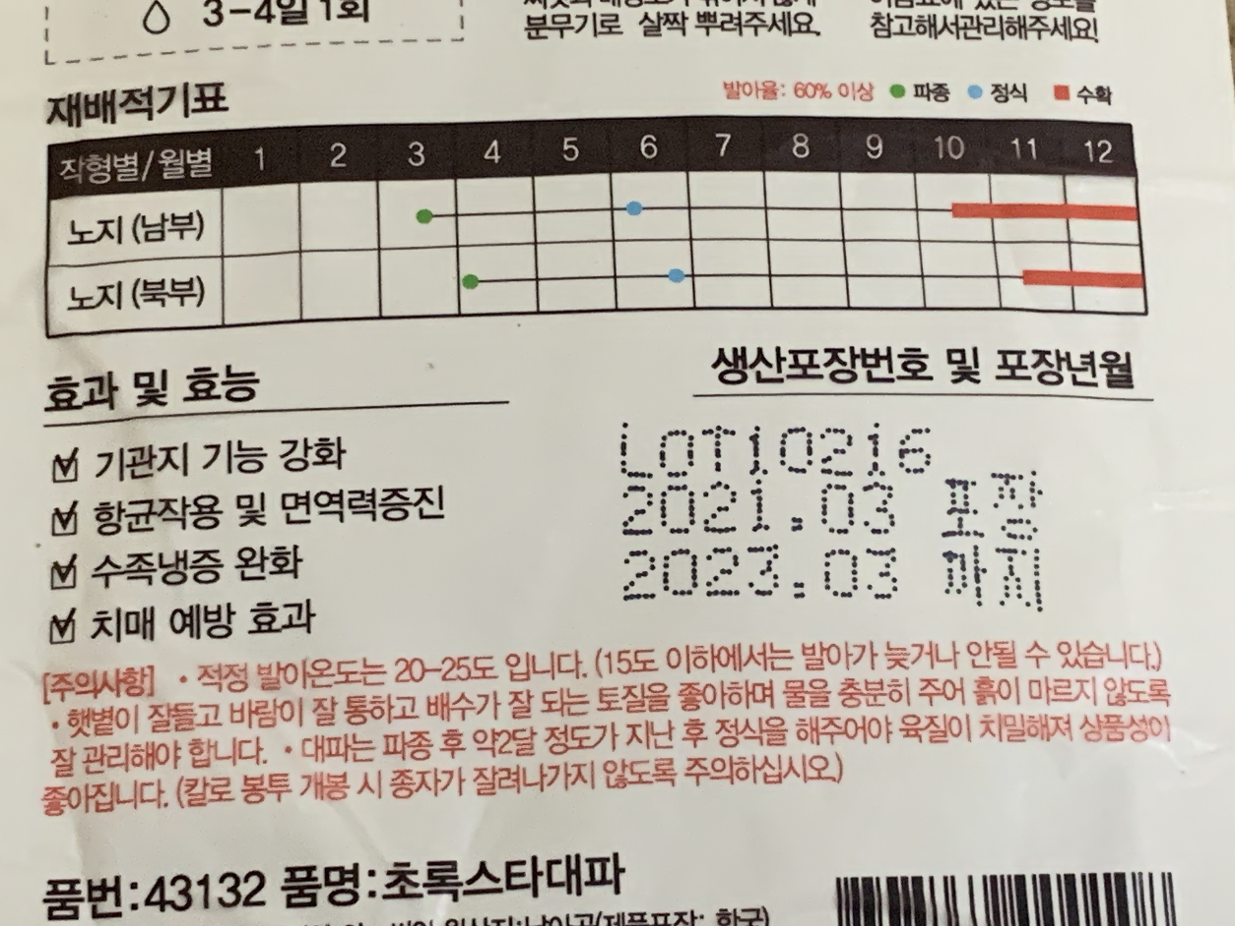 어제 서랍을 뒤적이다가 대파씨앗을 발견했다. 작년에 샀다고 생각했는데 포장일이 2021년인걸 보니 재작년에 사두었던 것 같다. 씨앗에도 유통기한이 있는데 딱 하루가 지났다… (오늘은 4월 1일. 유통기한은 2023년 3월까지) 인터넷에 찾아보니 대파 씨앗은 시간이 지나면 지날수록 발아율이 낮아져 구매한 그 해에 바로 심는 게 좋다고 한다.