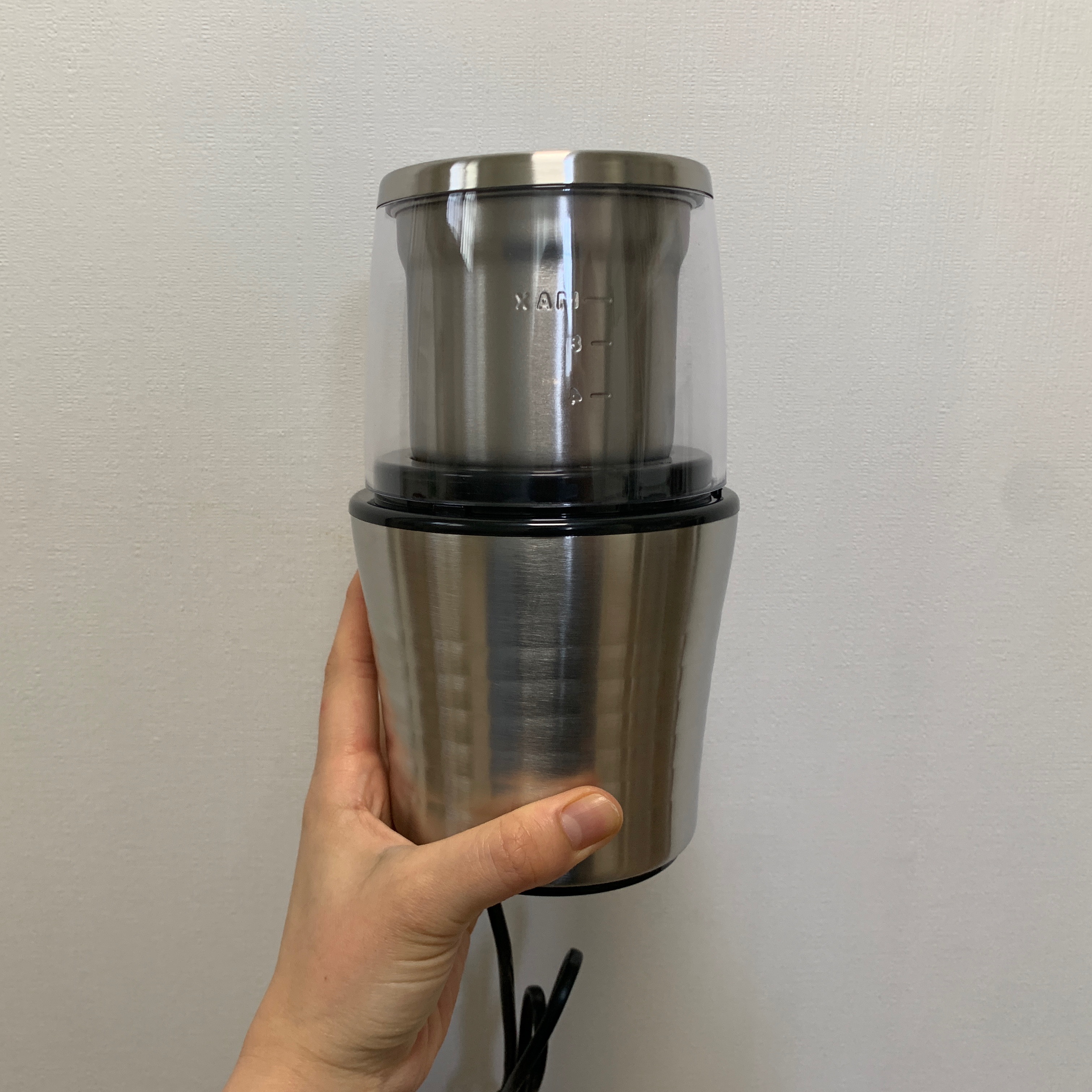 전동 그라인더는 <칼딘 디테처블 전동 커피 그라인더 푸시 다운>을 구매했는데 구매 이유는 역시나 디자인이 깔끔했고 가격이 3만 원 정도로 저렴했다. 또한 이름에도 볼 수 있듯이 뚜껑을 닫고 눌러야지 날이 돌아가는 형식이라 뚜껑 없이 버튼이 눌러주셔 다칠 수 있는 위험을 최소화했다는 게 좋았다. 또한, 커피가 갈리는 분쇄통이 본체로부터 분리되는 게 좋았는다. 그전의 그라인더는 분리가 안돼서 물세척을 하지 못한다는 게 불편했는데, 이 아이는 본체에서 통을 분리해서 물세척이 가능했다. 한 가지 실수는, 1-2인용의 작은 그라인더를 샀어야 하는데 그걸 확인을 안 하고 사서 막상 오니 사이즈가 커서 확인해 보니 최대 5인용까지 가능한 사이즈였다.