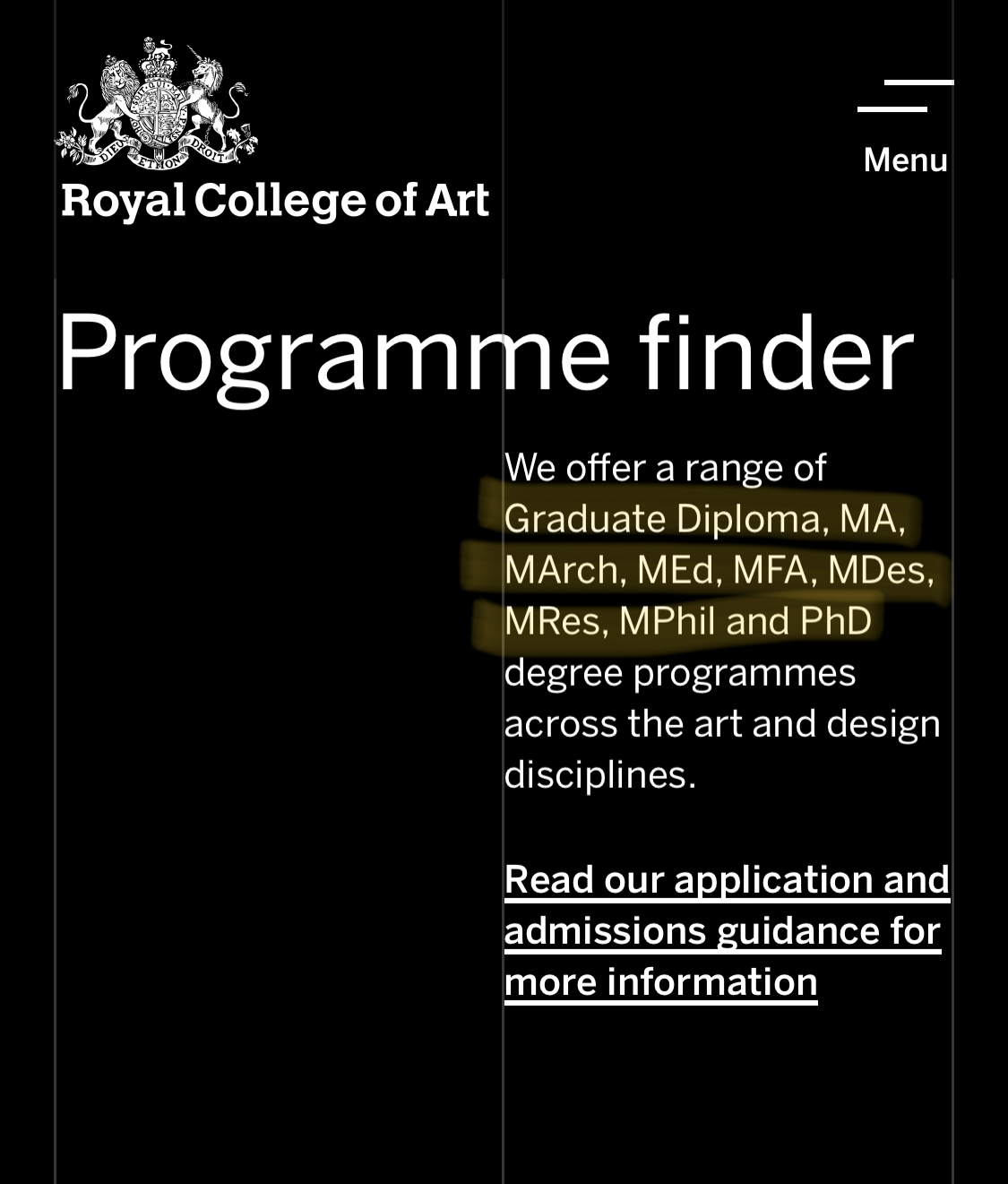 *모든 정보는 영국왕립예술학교 RCA 공식 홈페이지를 참고했다.