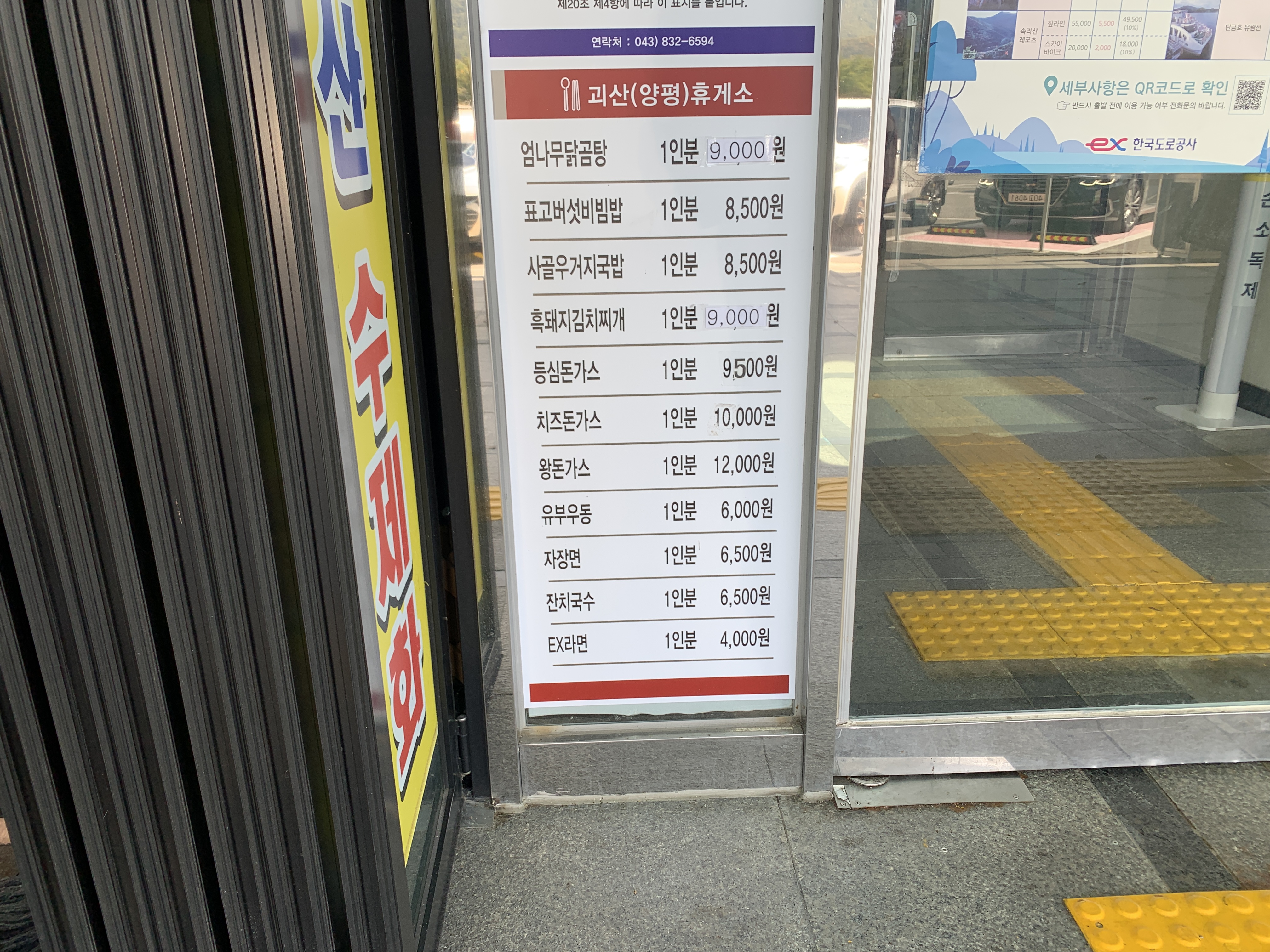 아래는 괴산휴게소에 있는 메뉴들이다.