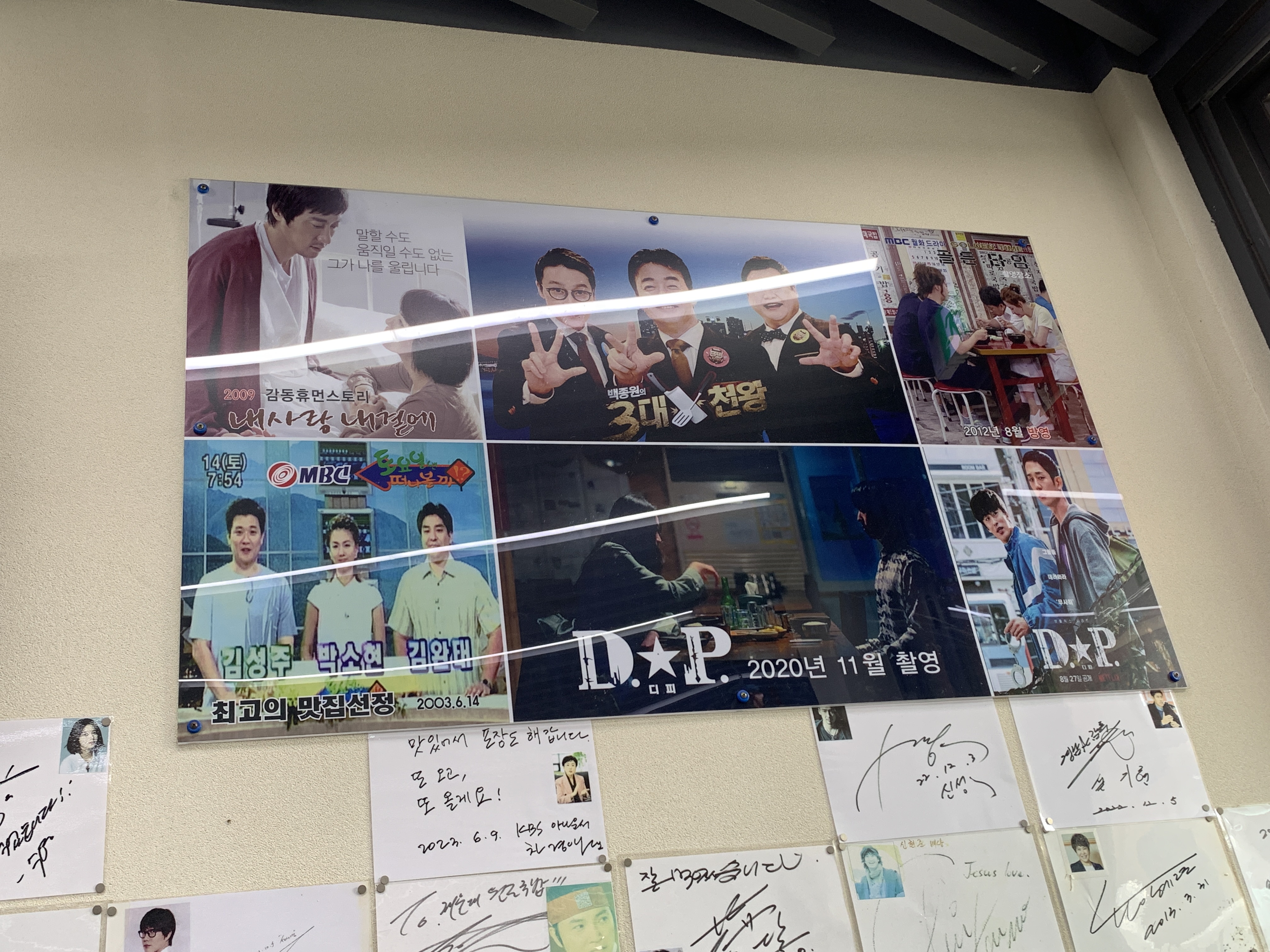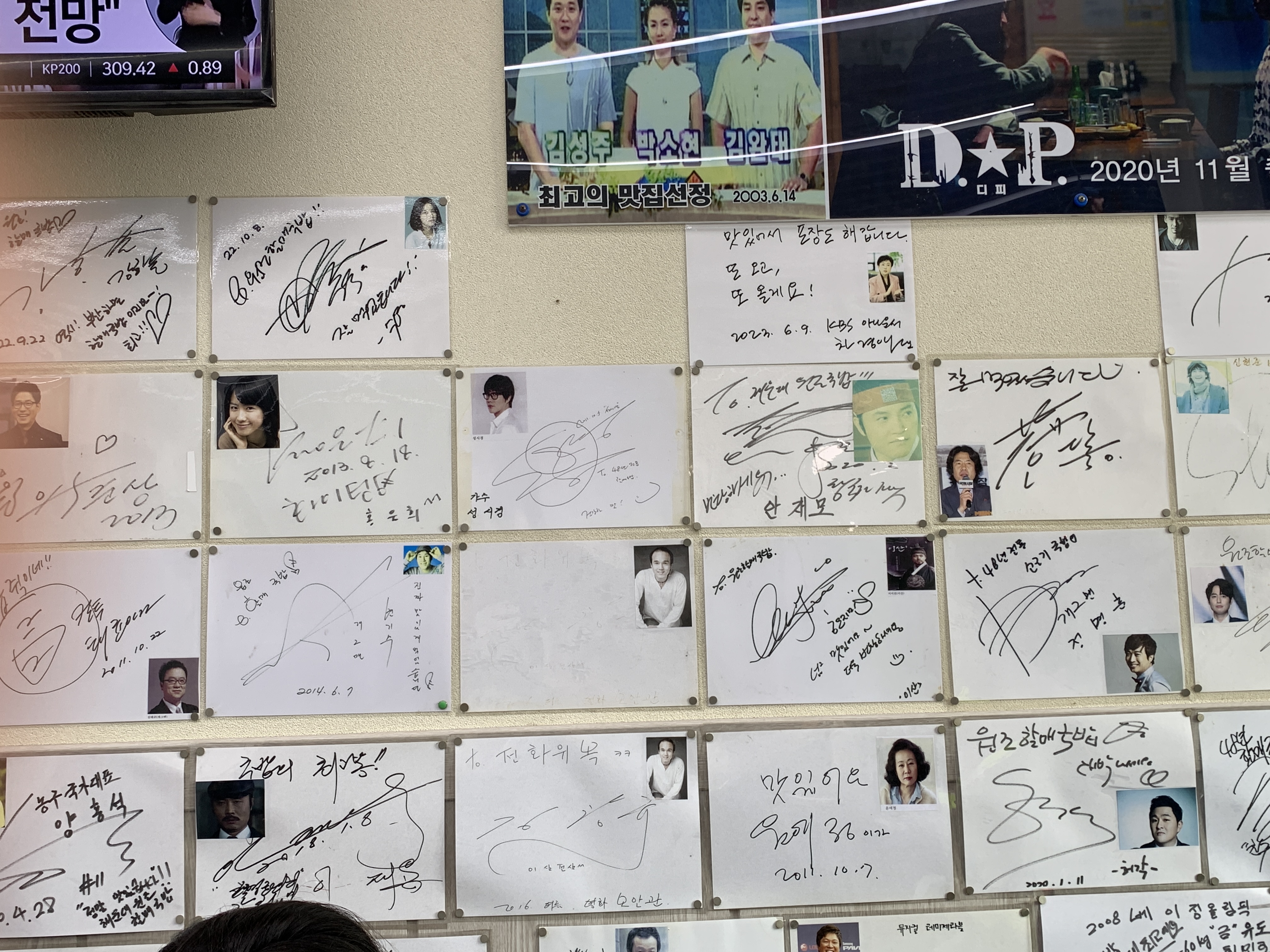 그리고 유명한 배우들이 와서 남기고 간 싸인들이 많았다. 혹시 누군지 모를까 싶어 사진까지 뽑아서 붙여놓은 게 정성이었다.