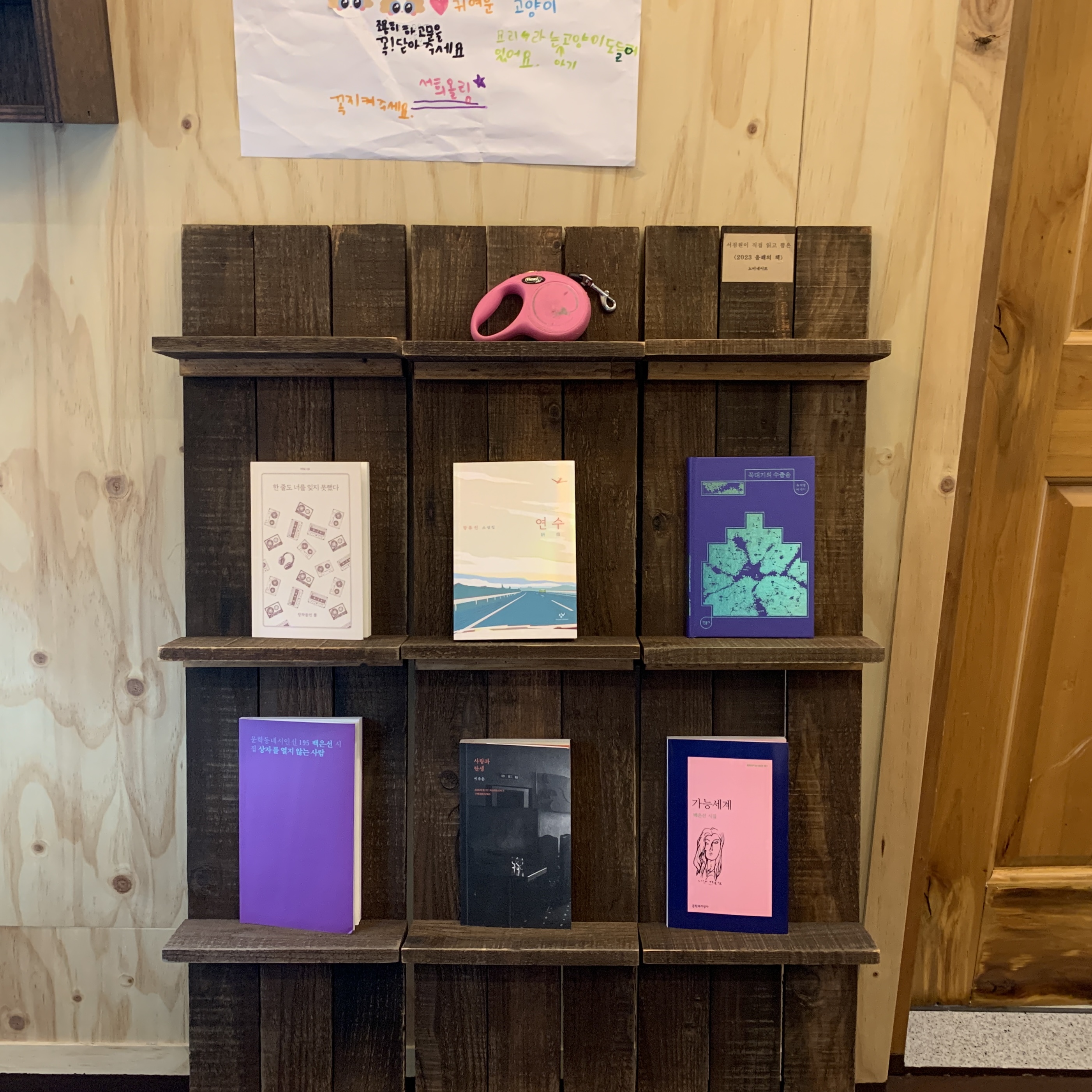 사진이 작아서 잘 보이진 않지만 오른쪽 위쪽에 종이로 <서점원이 직접 읽고 뽑은 2023년 올해의 책>이라고 적혀 있다. 그냥 서점원이 뽑은 올해의 책이 아니라 ‘직접 읽고’라는 문장만 넣었을 뿐인데 신뢰가 확 가고 궁금해졌다. 독립서점만 할 수 있는 매력이라고 할까. 참 좋았다.