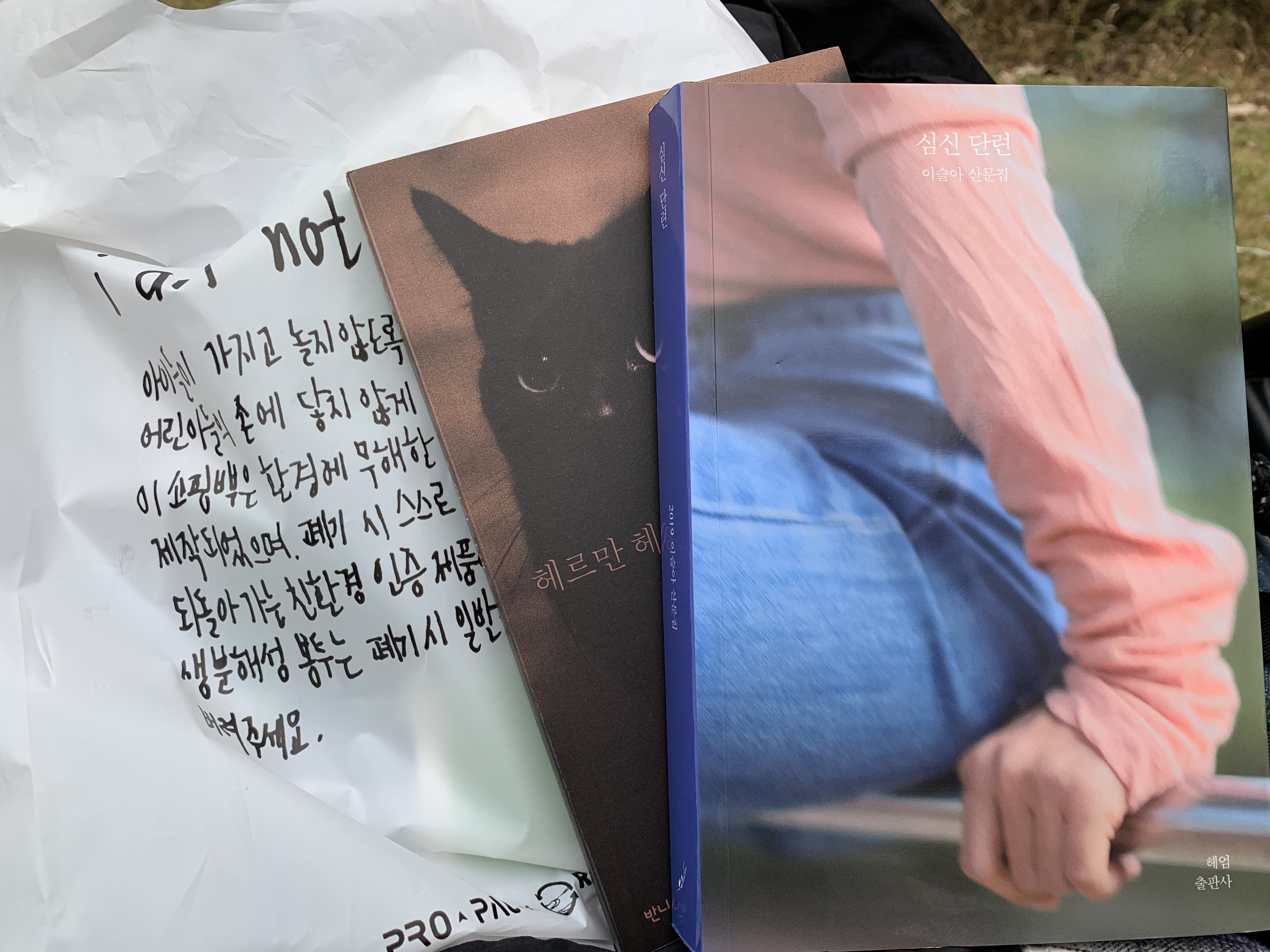내가 구매한 책은 이슬아 님의 산문집 <심신단련> 그리고 헤르만 헤세의 <밤의 사색>. 책을 구매하면 주는 친환경 봉투도 귀여웠다.