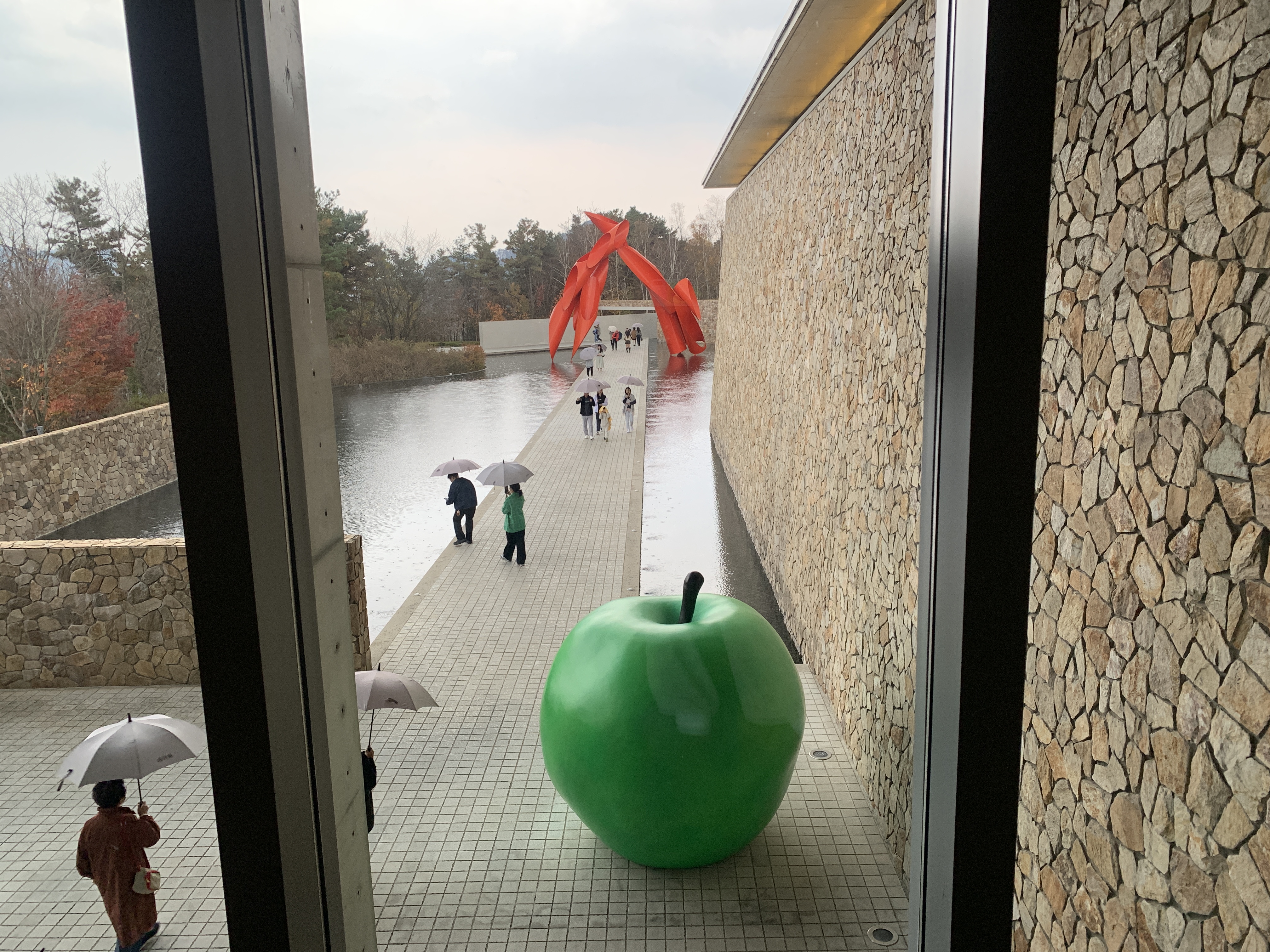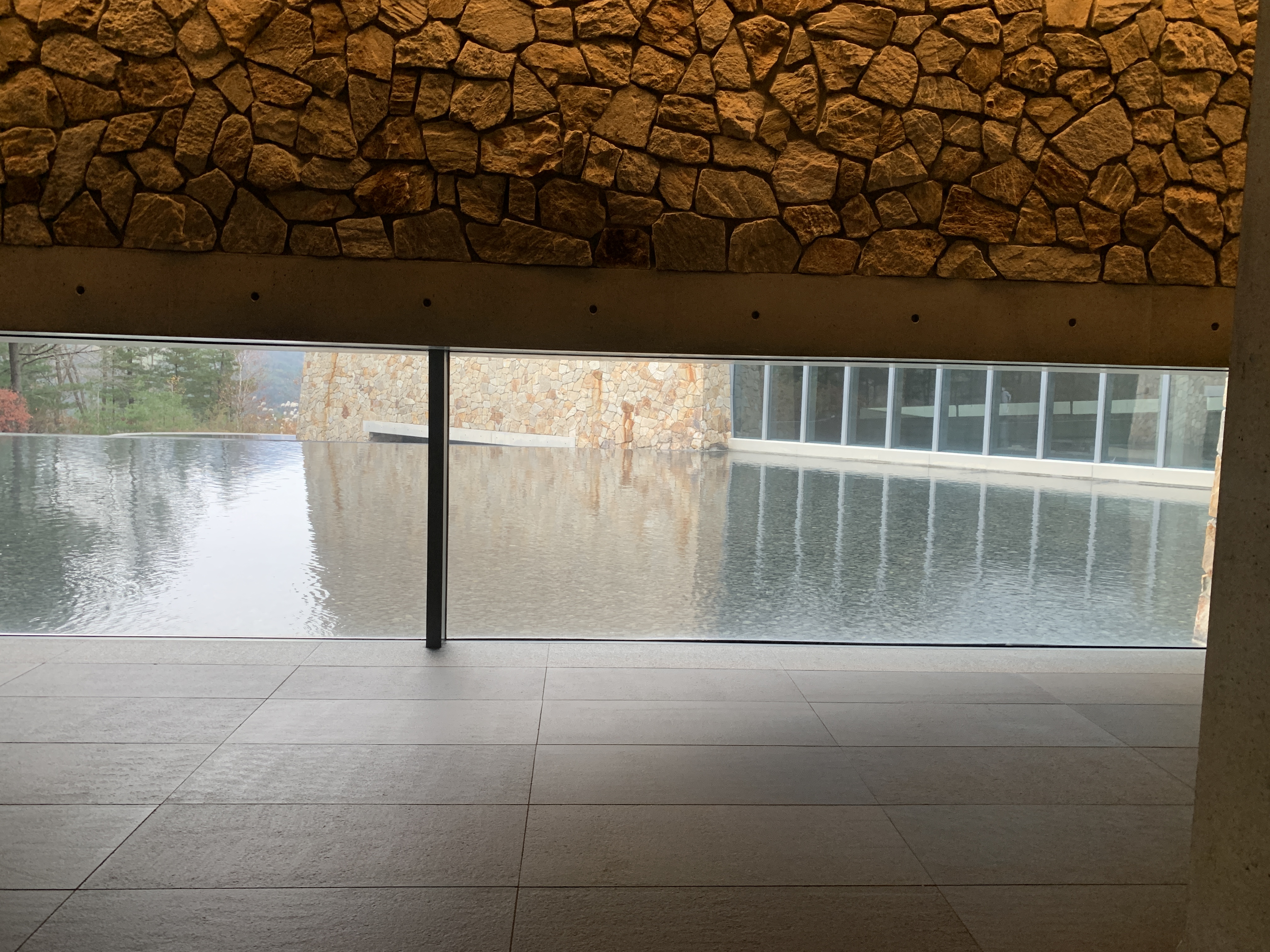 뮤지엄 본관으로 들어와서 안도타다오가 설계한 동선을 따라 움직이면 중간중간 사람들의 시야를 고려한 창문들을 볼 수 있다. 인상 깊었던 것은 발아래 창문이 길게 나있는 것이었는데 이곳을 통해서 밖을 두르고 있는 워터 가든이 보이고 건물 안에 있는 사람들은 마치 물 위에 떠있는 듯한 느낌을 받을 수 있다.