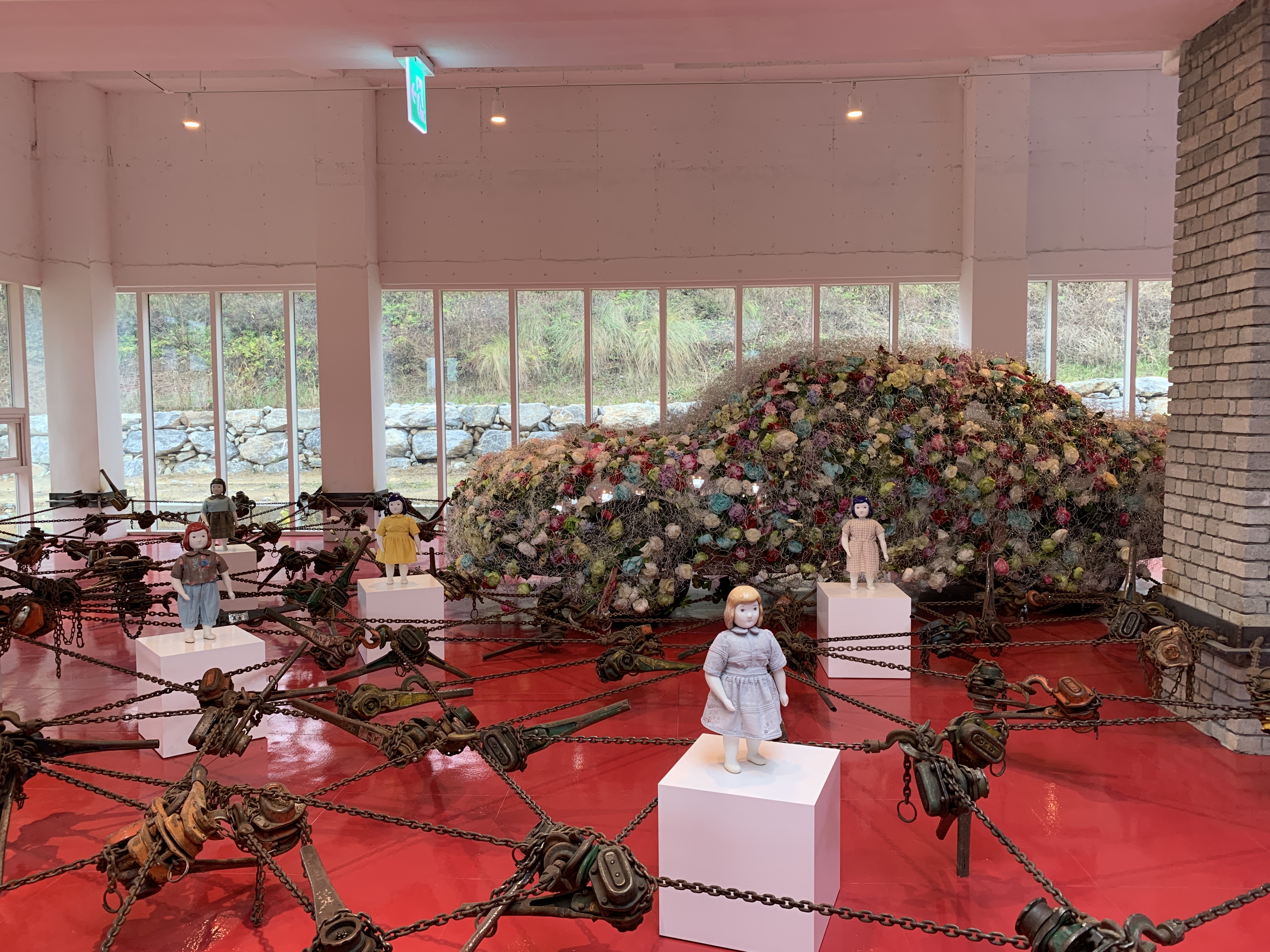 뮤지엄 산의 대표적인 조형물. 실제로 보니 진짜 크다. 이 조형물이 저렇게 큰데 독특하게 멀리 서는 안 보인다. 벽이나 건물을 의 위치를 활용해서 가까이 다가오기 전까지는 시야에서 안 보이게 일부러 구성한 것 같았다.
