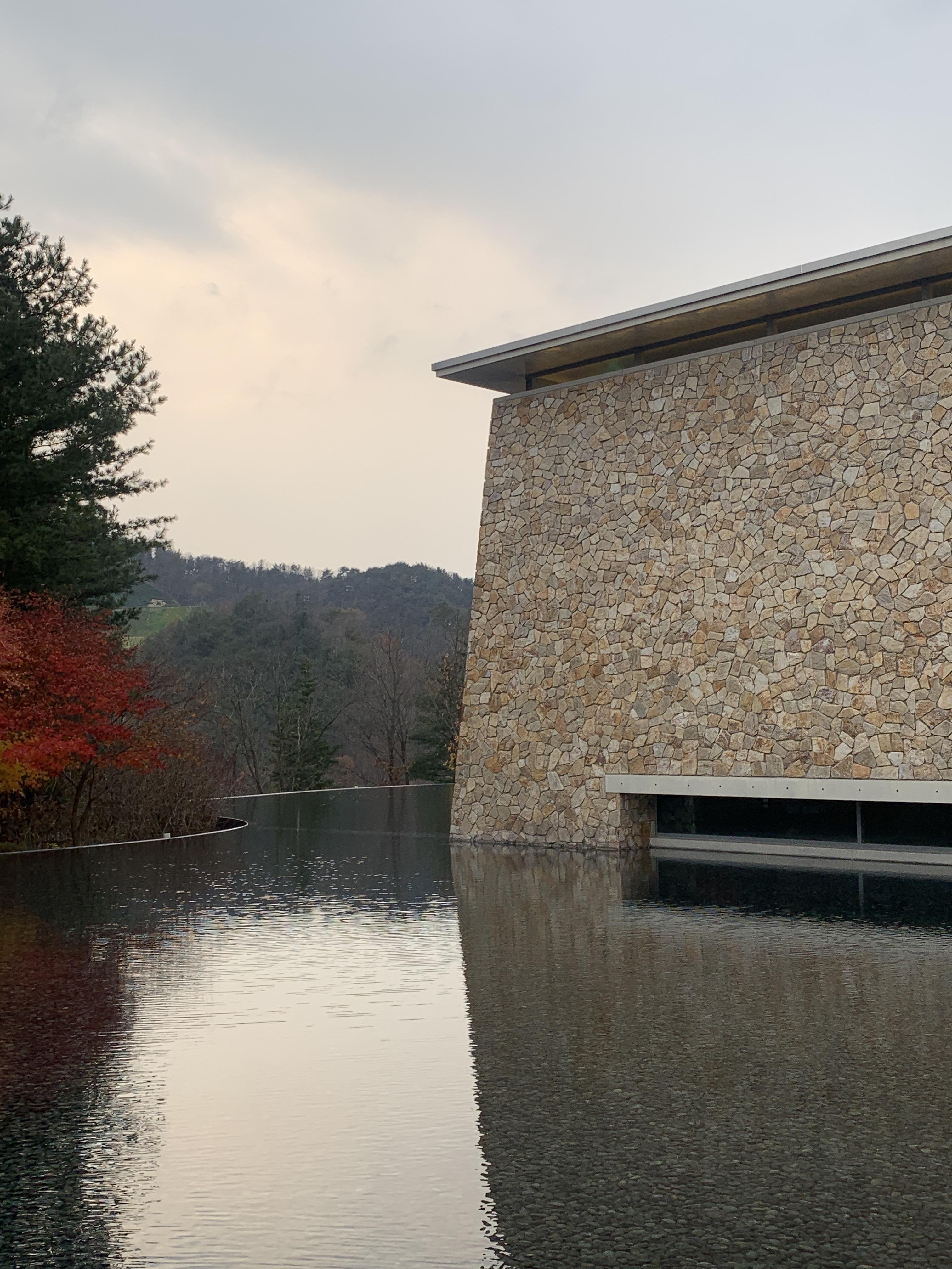 뮤지엄산은 세계적인 건축가 안도타다오에 의해 설계되었다. 이 공간은 엄청난 완성도를 자랑한다. 최근에 <심미안 수업>이라는 책을 읽고 있는데 이 책에서는 건축이야말로 종합적인 예술이라고 말하며, 조화와 통일성, 비례와 균형은 건축물을 더욱더 빛나게 만드는 요소라고 설명한다.
